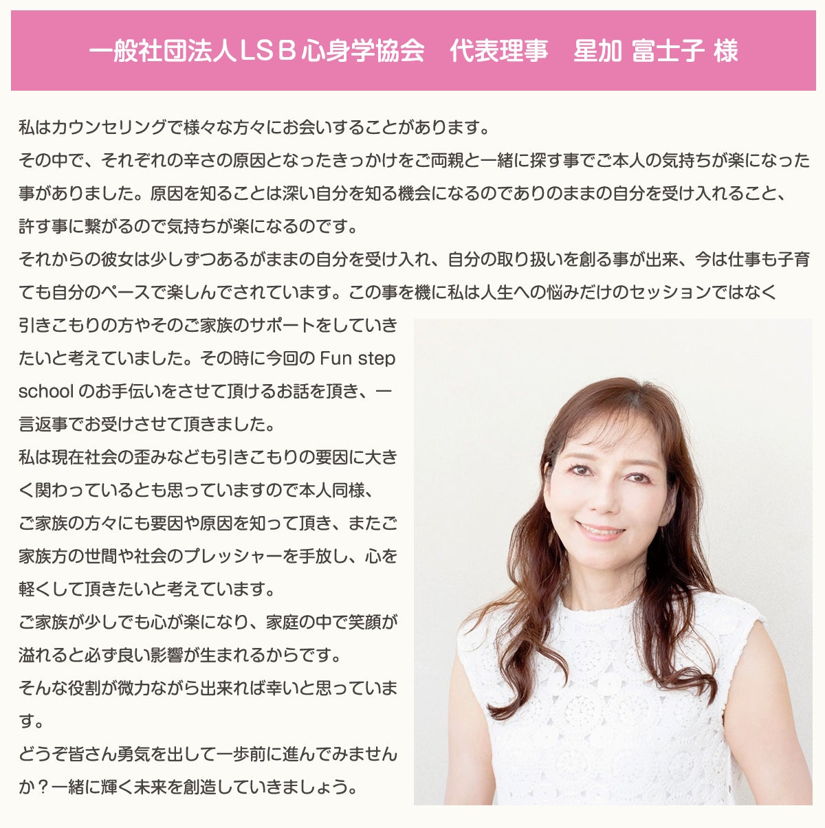 一般社団法人LSB心身学協会 代表理事 星加 富士子