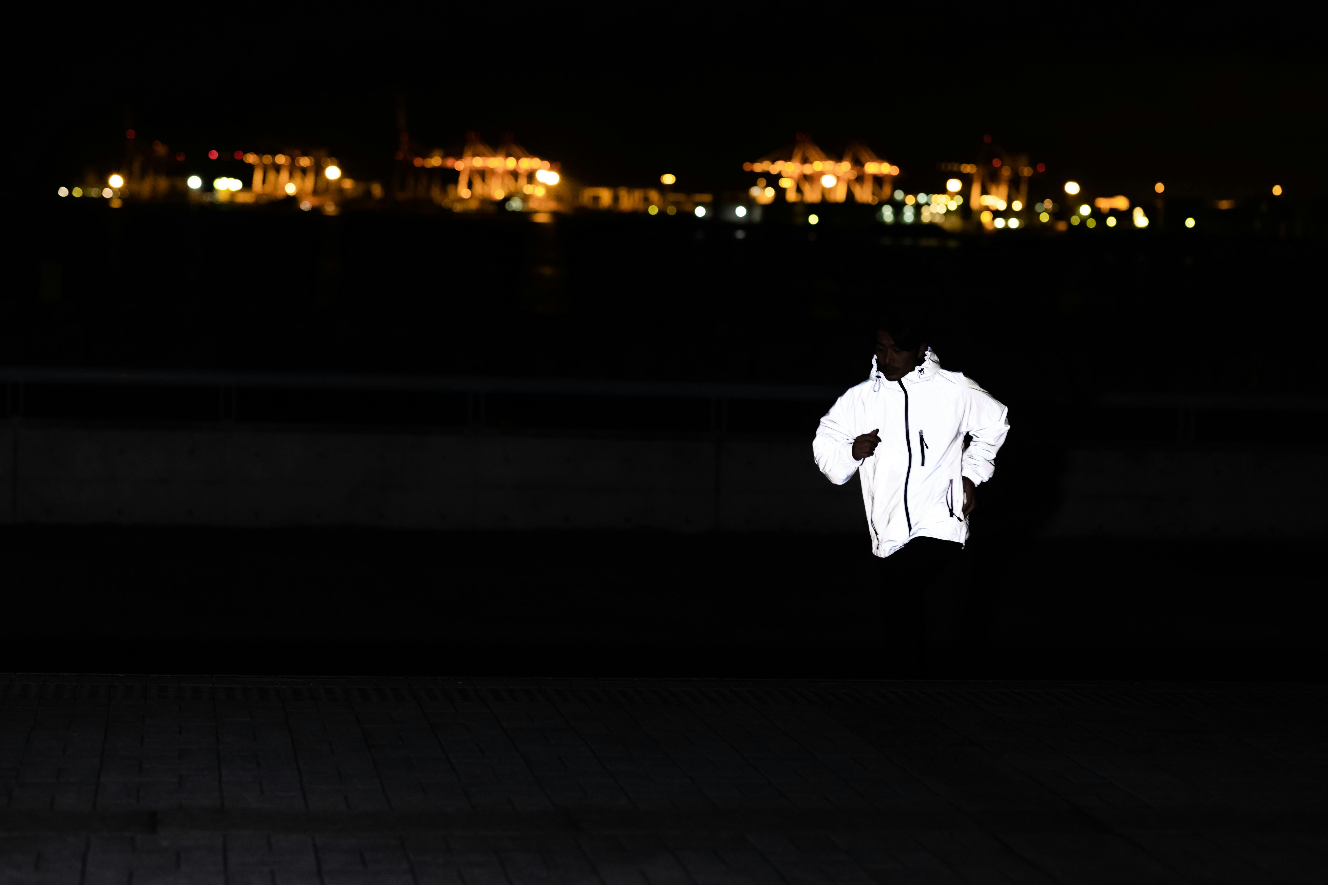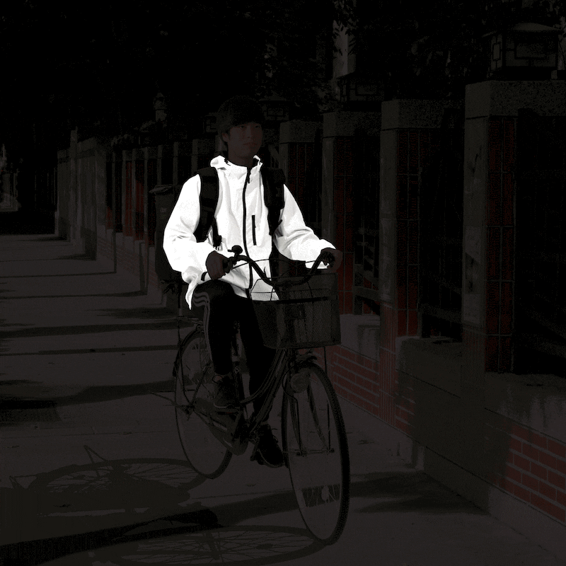 夜道で光が当たると光るジャケットに変身