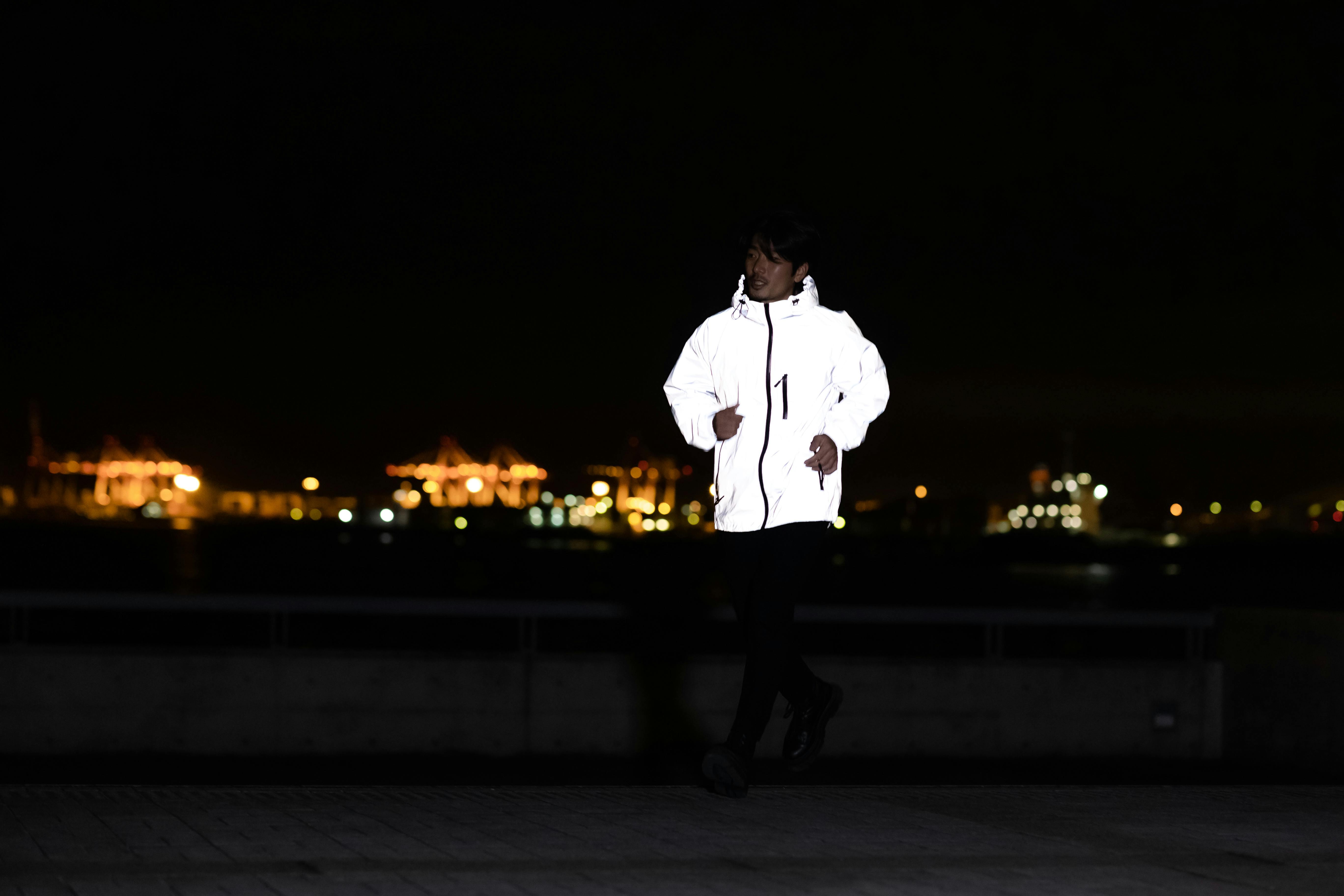 ピカジャケは驚くほど真っ白に光っていました! (足元の靴の反射板と比較してください)