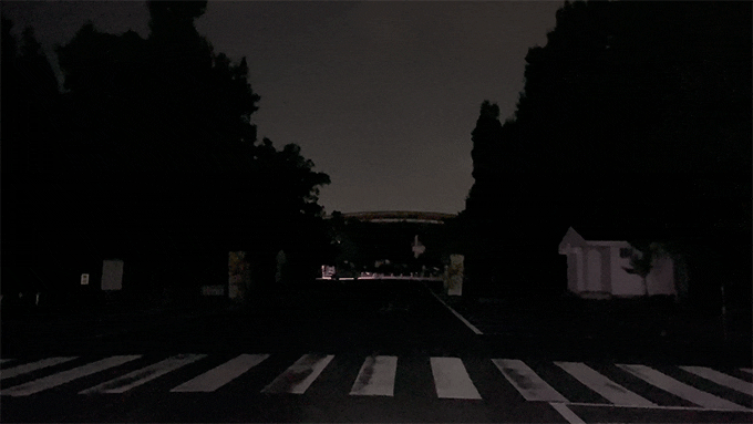 実験1:暗い夜道で約50メートル先の歩行者に自動車のスモールライトを当てました
