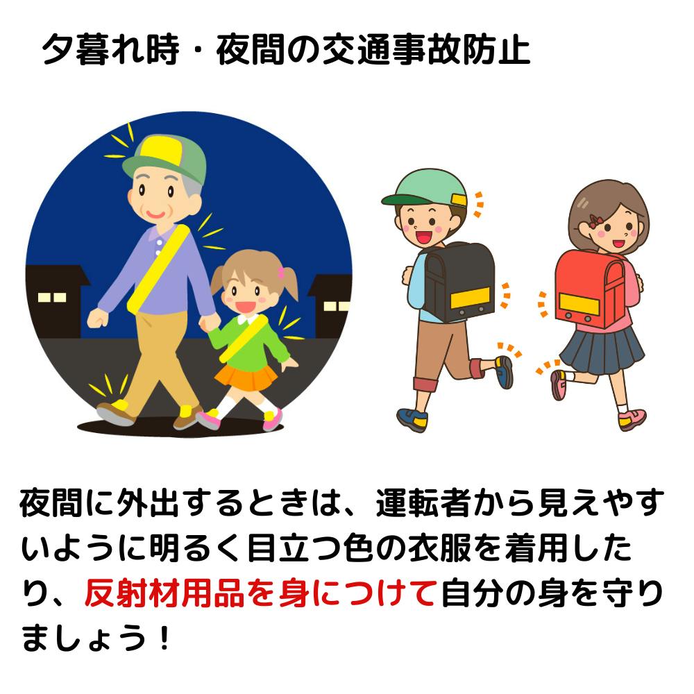 視認性を高めるには、歩行者と自転車では反射材を身につけて、存在を周りに知らせることで悲しい事故の防止に役立ちます!