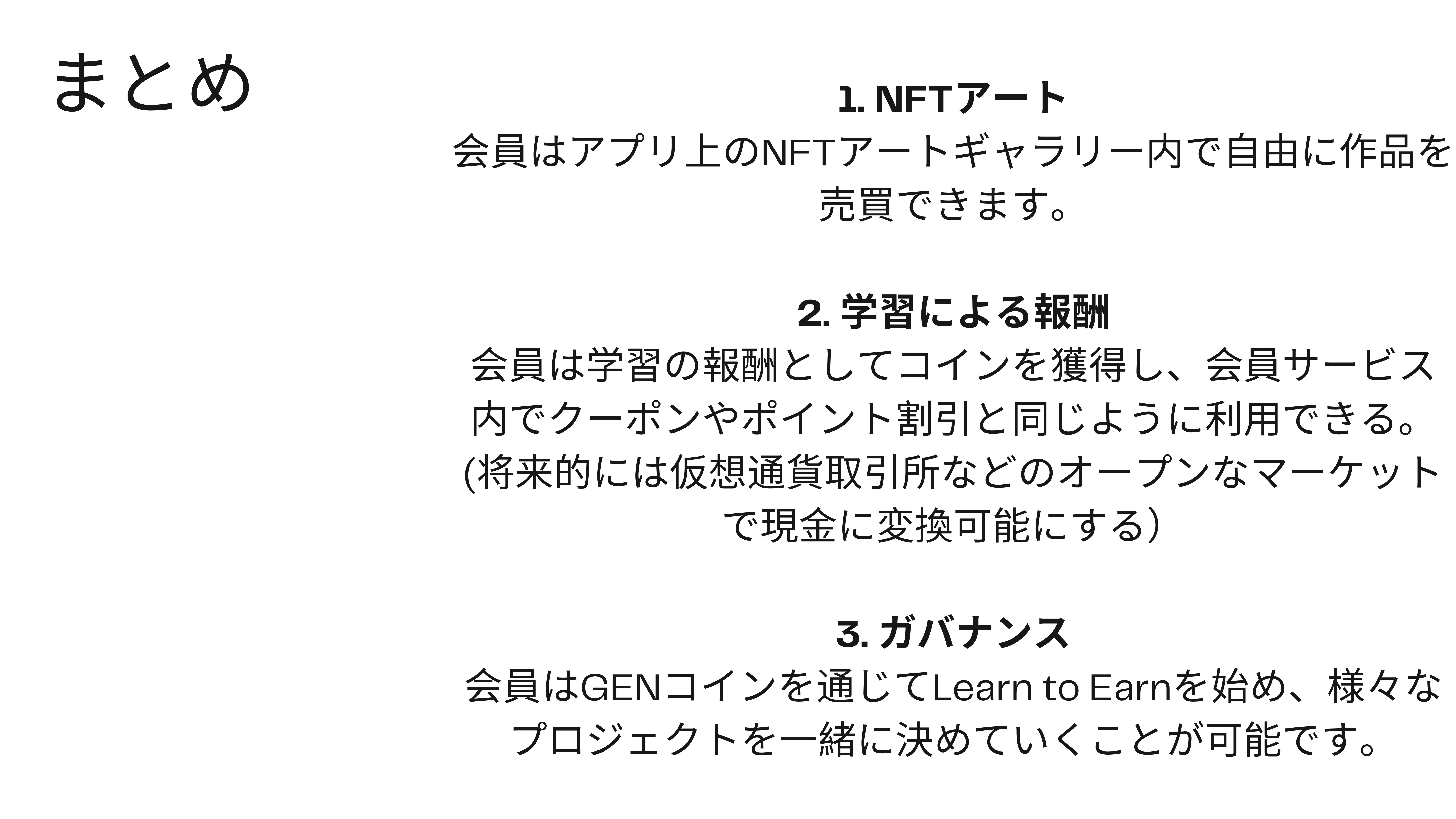 その源内の末裔であるエンジニアのTakaさんが開発した共通通貨GENコインを会員証として配布します。このコインはICO (公開) を前提に開発中のプロダクトですので、将来的にはNFTアートと紐付けしたり学習時間に対して付与される学んで稼げる" Learn to Earn"の仕組みをみんなで一緒に作っていきたいと考えてます。