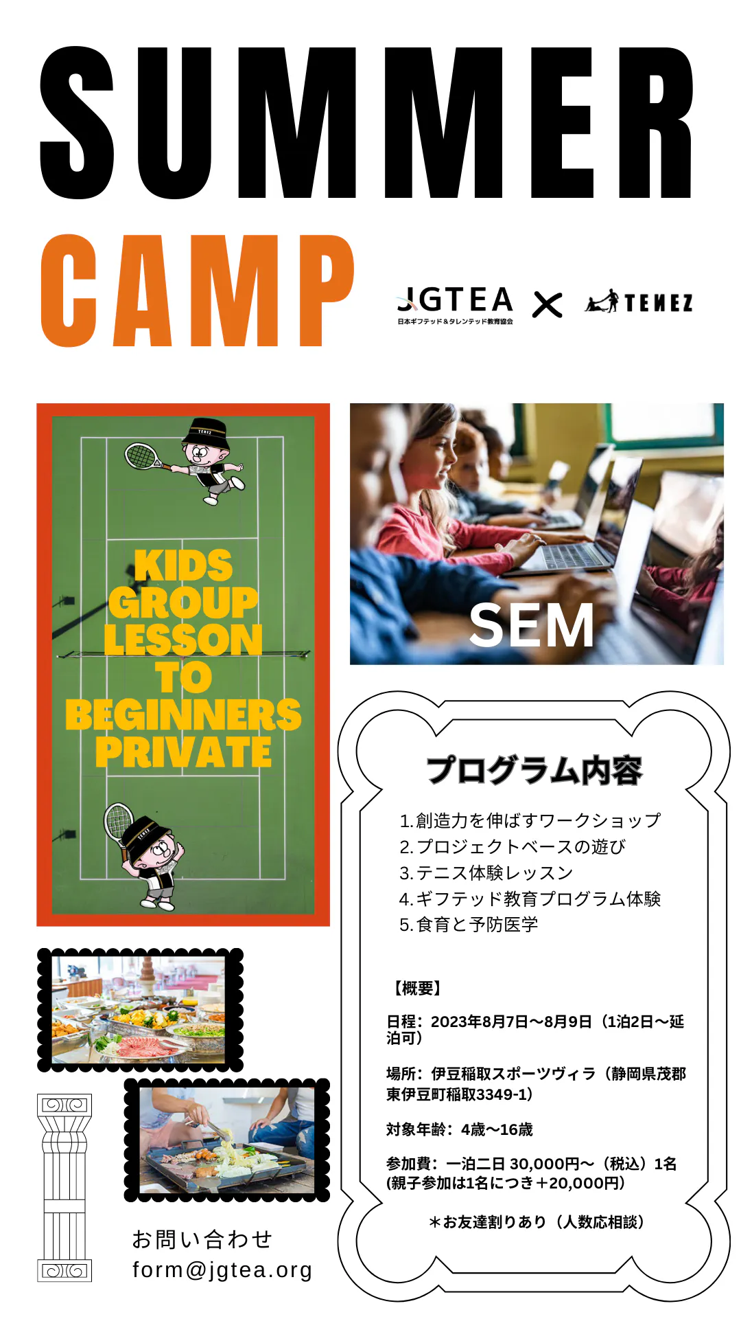 2023/07/01 18:47サポーターの皆様、お久しぶりでございます。この度、JGTEA主催のサマースクール2023を開催する運びとなりました。このサマースクールでは、子どもたちが自然の中で遊び、学びながら他者との共存や自己の成長、内面と向き合う機会となります。ギフテッド教育プログラムSEMの体験や、テニス体験、クリエイティブ活動等など、様々な体験を通じて『多様性と主体性』を引き出すことができます。また、子どもたちは、他の子どもたちと交流することで、協調性やチームワークを学ぶことができます。ご支援いただいた皆様のおかげで、無事にサマースクールを開催することができ本当に感謝しております。今後とも、引き続き「ギフテッド教育」の成功に向けて邁進してまいります。皆様の温かいご支援、ご声援をどうぞよろしくお願いいたします。プロジェクトの最新情報は随時お伝えしてまいりますので、どうぞお楽しみに。JGTEA代表理事 原康子 もっと見る