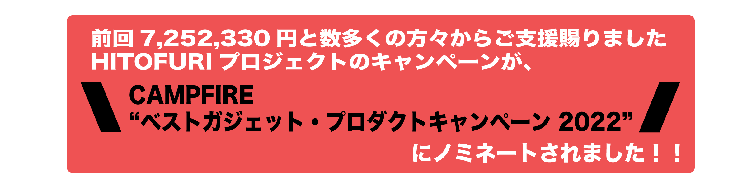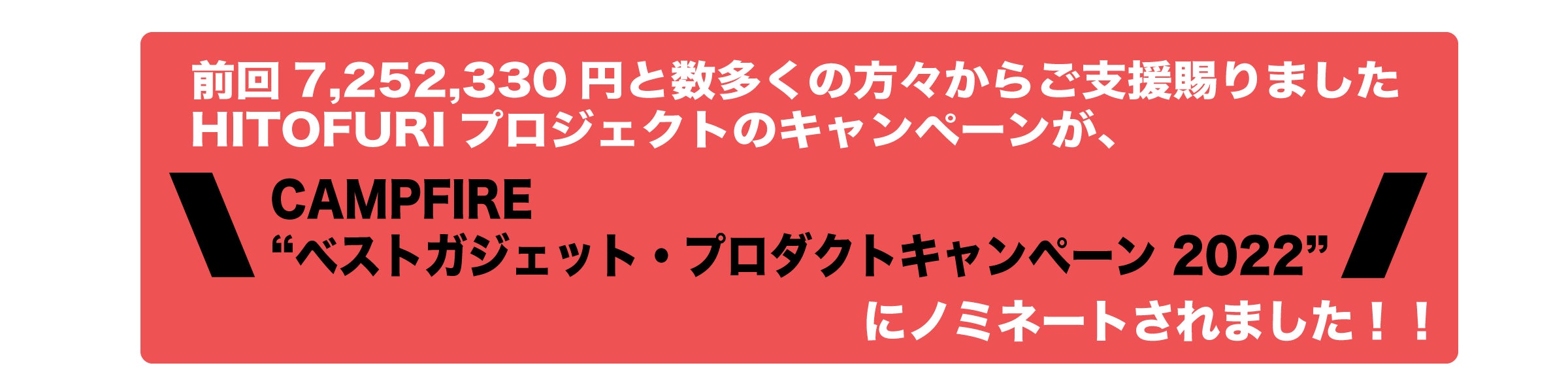 CAMPFIRE “ベストガジェット・プロダクトキャンペーン 2022”にノミネートしていただきました。