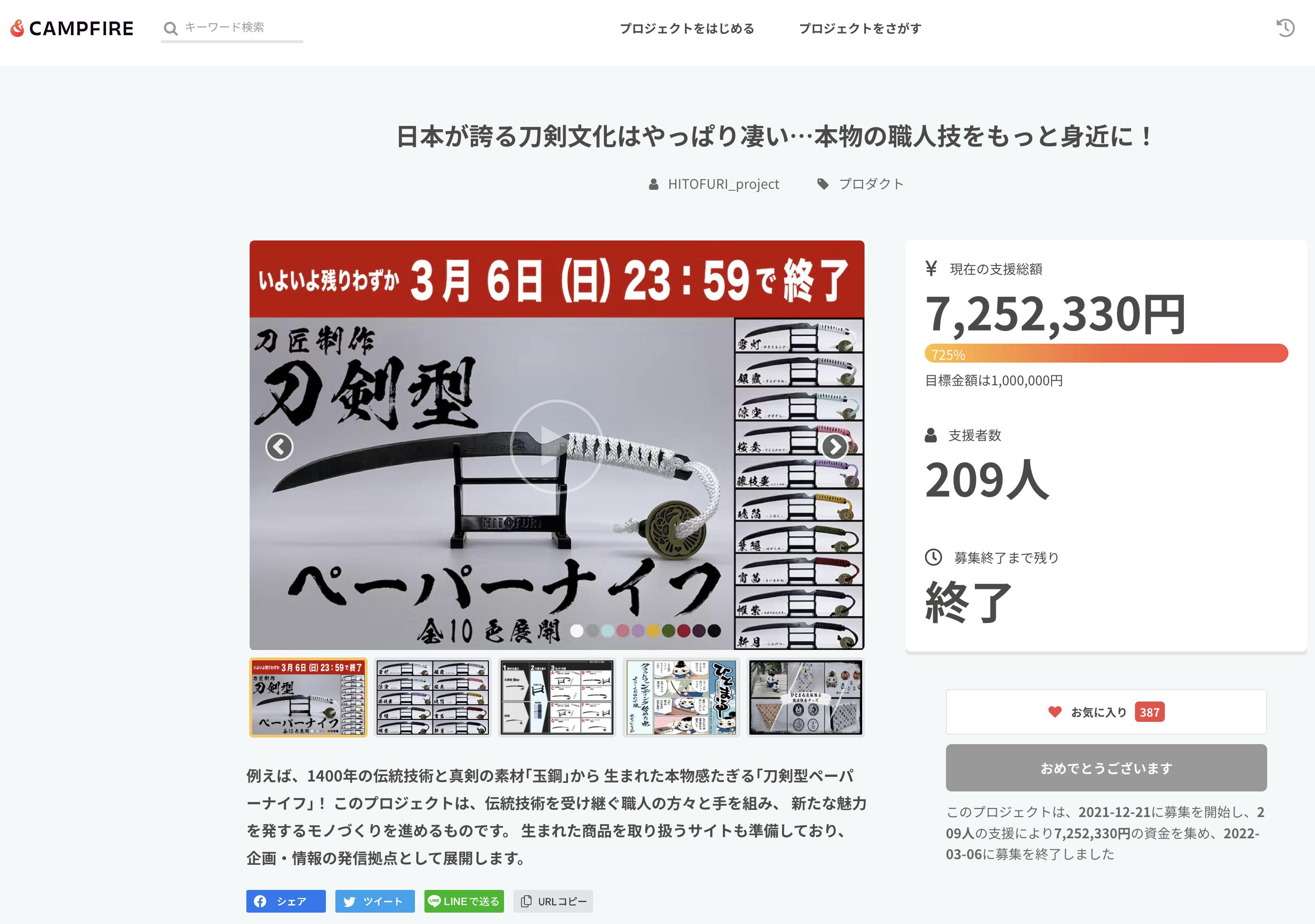 2024/07/11 08:30||◤プロジェクト開始!! ◢||『御守型ひとふり』いよいよ始まりました! 特別なこの日を、素敵なスタートとともに皆さんと共有できることを嬉しく思います。下のリンクからプロジェクトページへアクセスして、詳細をご覧ください https://camp-fire.jp/projects/view/757445?utm_campaign=cp_po_share_c_msg_mypage_projects_show今こそ、伝統と革新が融合する瞬間にご参加ください。 #御守型ひとふり #キャンプファイヤー #新しい始まり もっと見る【プレゼント企画、まだ間に合います!】