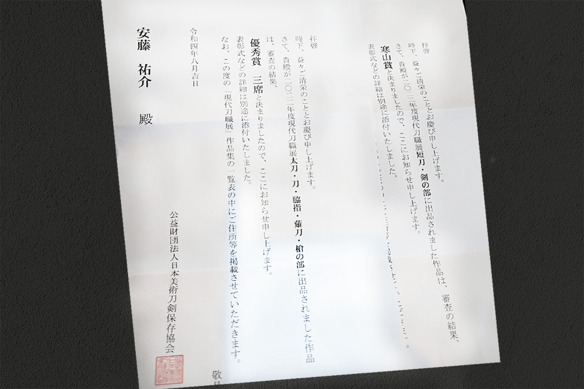・短刀 寒山賞(特賞)
