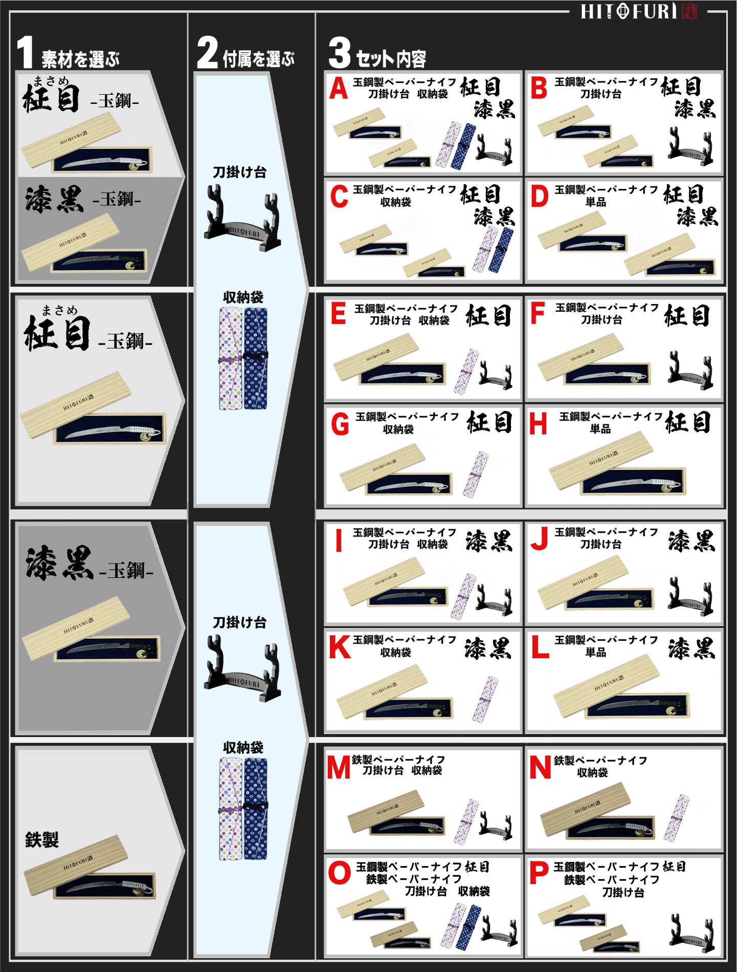 柄は、「ひとまるモノグラム柄」と「HITOFURI鐔柄」の2種類からお選びいただけます!