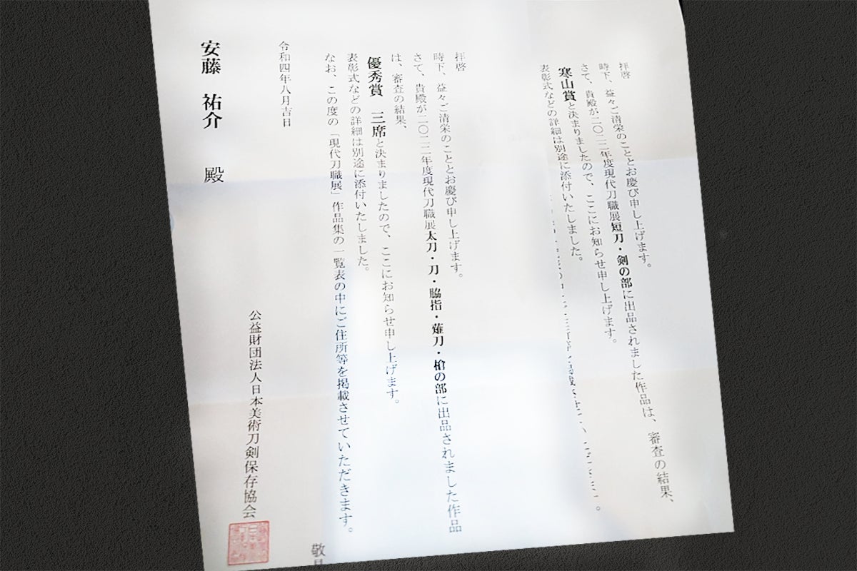 「乱れ映り」の表現が高く評価されての受賞となりました。
