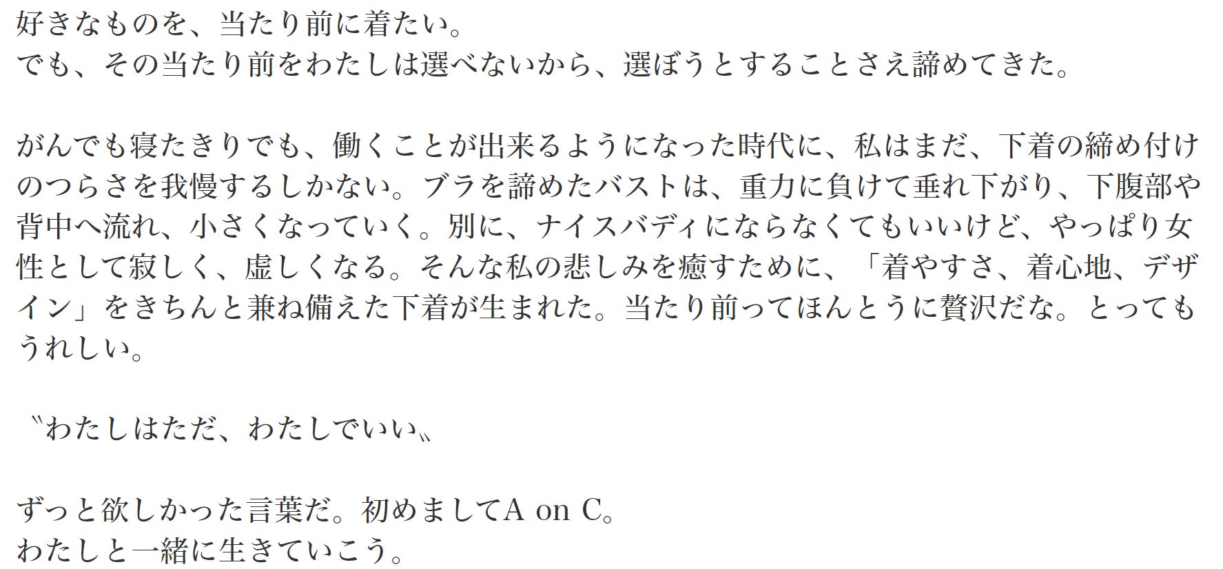 例えばAonCのランジェリーは、障がい者の声から生まれたものですが、