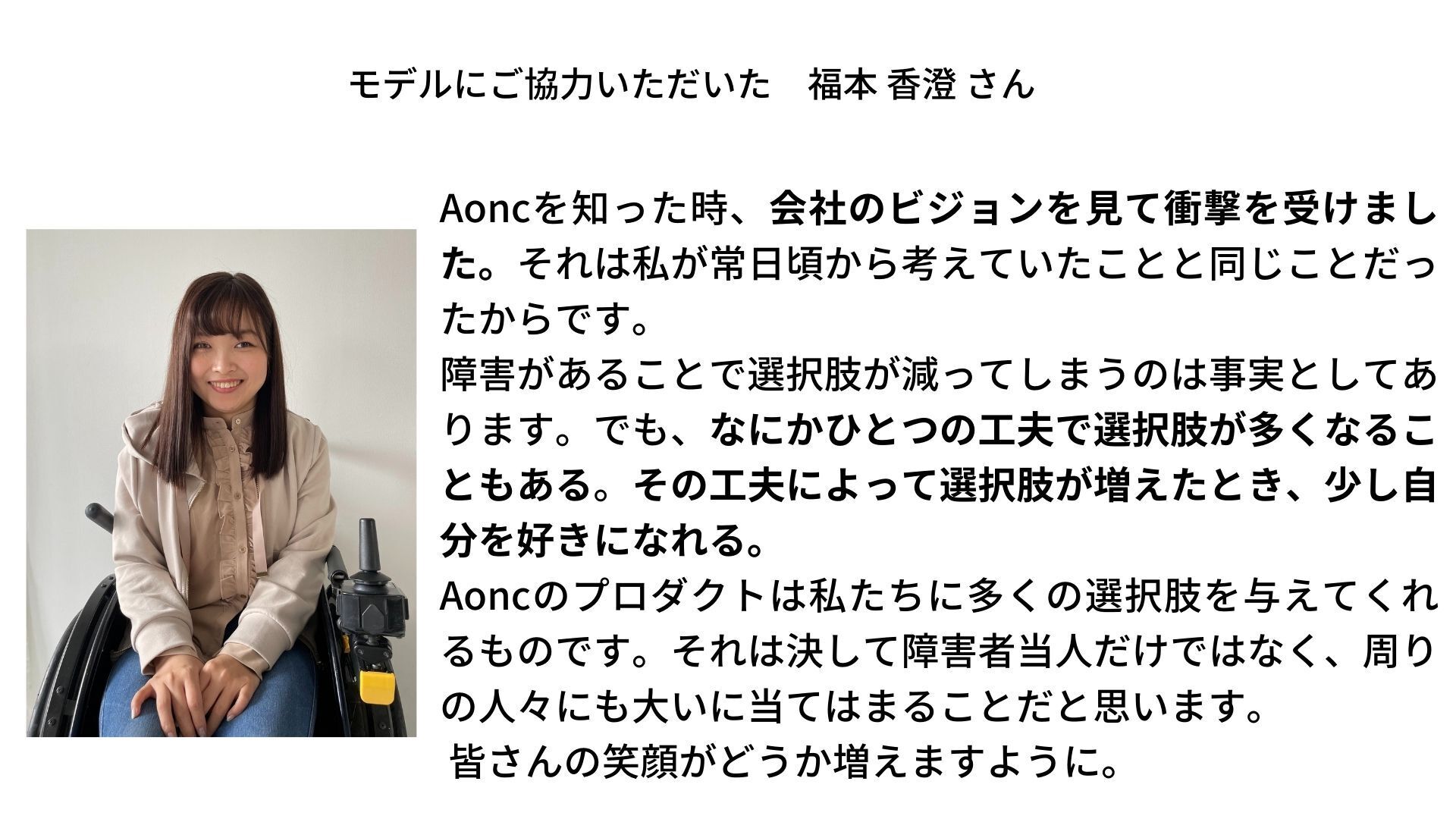 そもそも、私はAonCを障がい者専用のブランド、とは考えていません。