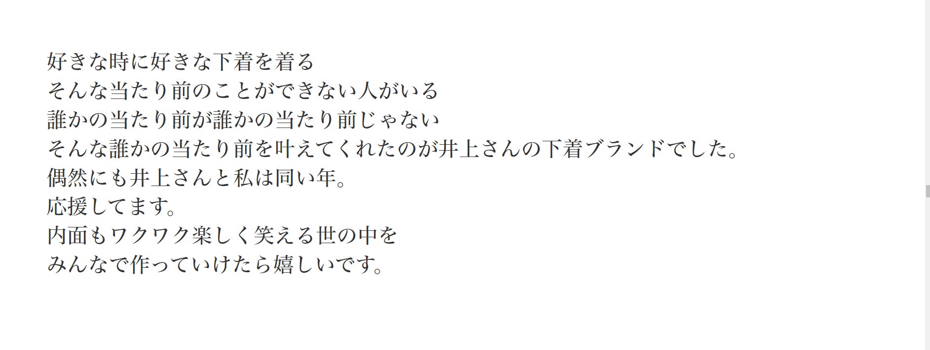 下着に対して、様々な意見をくれるだけではなく、一人でこの活動を進める私に、多くの方が励ましの声をかけてくださりました。その声があったからこそ、うまくいかない時も乗り越えることができました。