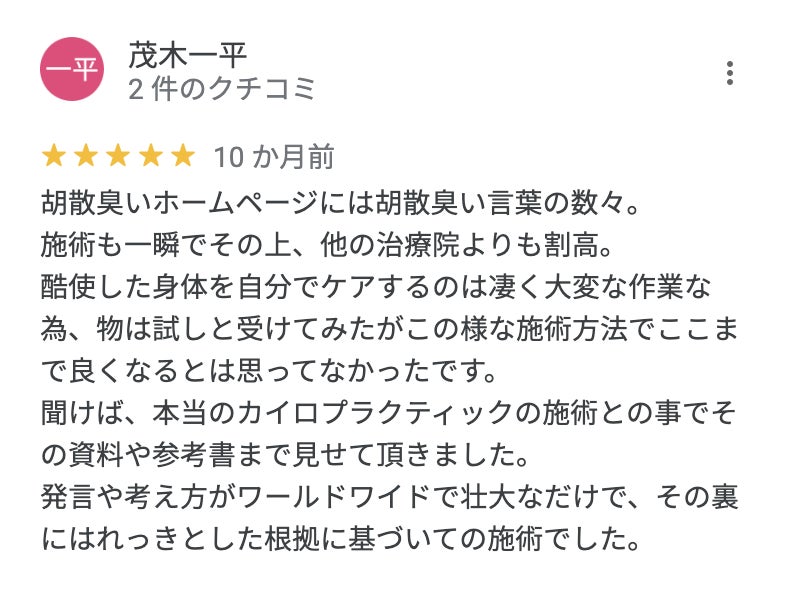 私はこれまで柔道整復、カイロプラクティック10,000症例以上の施術に携わりながら、