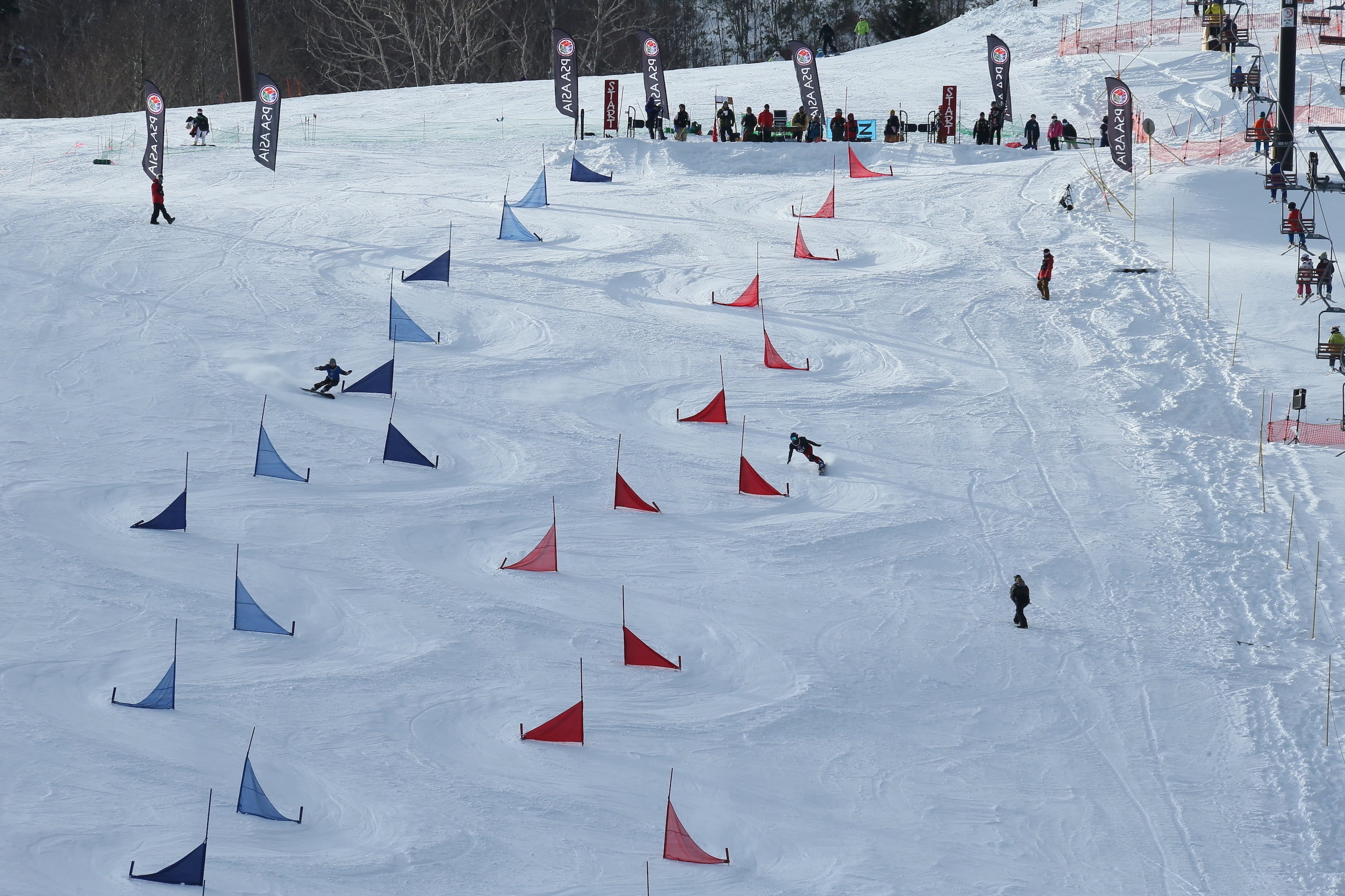写真の種目はDU(デュアルスラローム)で、2人同時に滑り、トーナメント形式で争います。