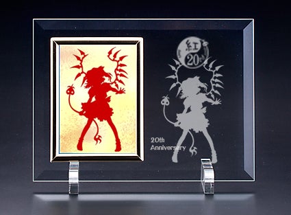 ●フォトフレーム…10,000円・記念タオル 1枚・お礼カード付 本体横長A4程度 サービスサイズ写真縦型が入ります 写真入れの右側に20thマークとキャラクターシルエットを彫ります。【ルーミア・チルノ・美鈴・パチュリー・咲夜・レミリア・フランドール 霊夢・魔理沙】から1名選択。