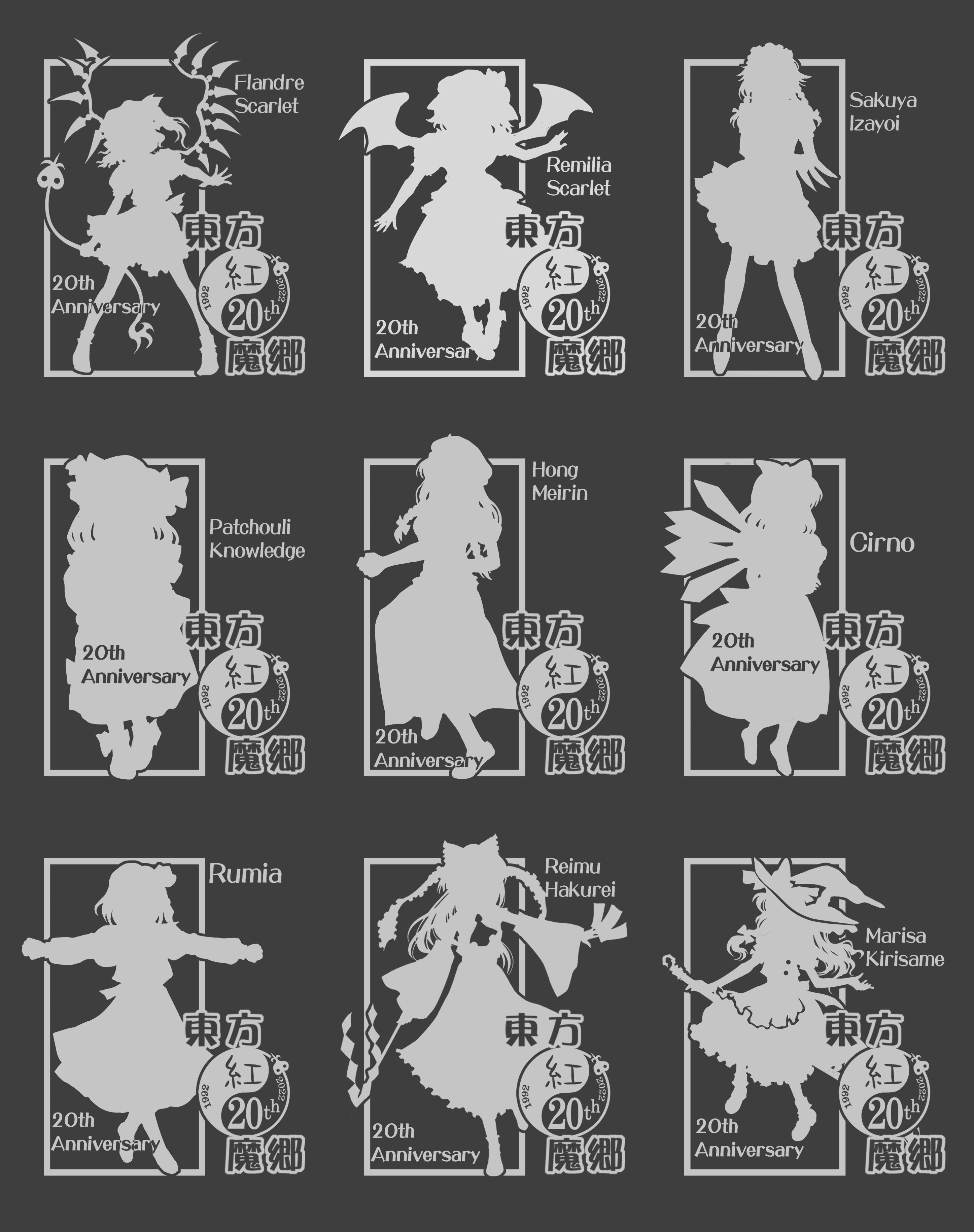 絵柄9種【ルーミア・チルノ・美鈴・パチュリー・咲夜・レミリア・フランドール 霊夢・魔理沙】