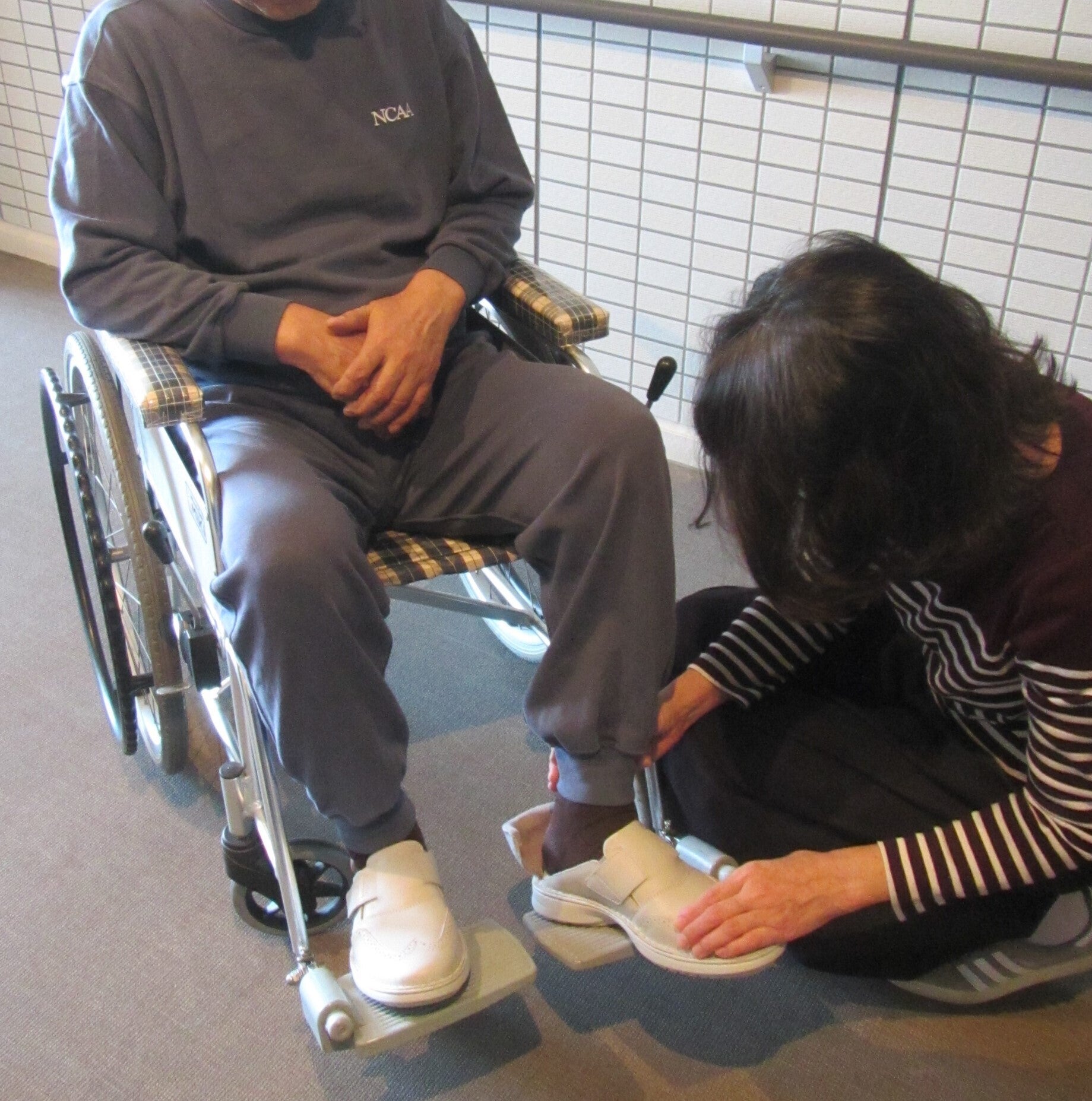 自宅で、施設で、病院で、介助不要で職員の手を煩わせません。ベッドから起きて素足でも気軽に履けます。