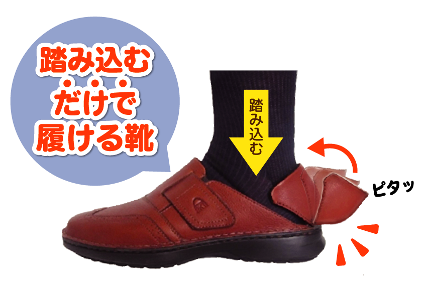 ①履く&脱ぐが簡単に!手を使わず立ったまま履ける。