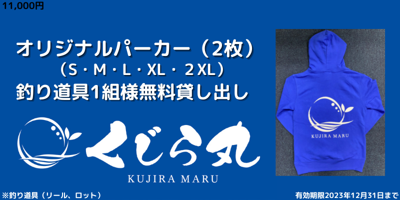11,000円 オリジナルパーカー(2枚)と1組様全員分の釣り道具の貸出