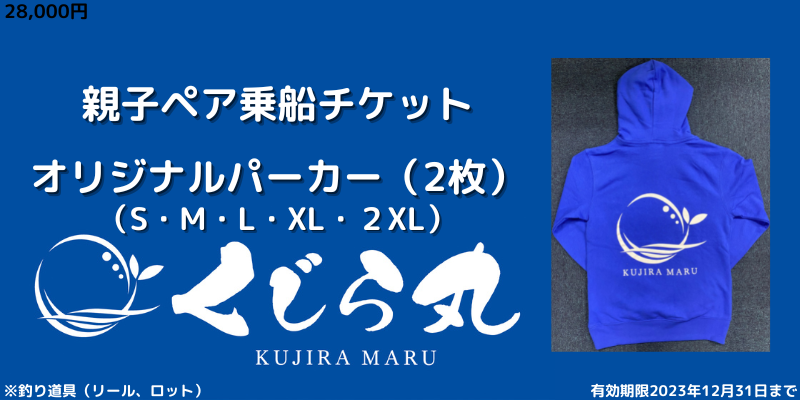 28,000円 オリジナルパーカー(2枚)と親子ペア乗船チケット(釣り道具貸出)