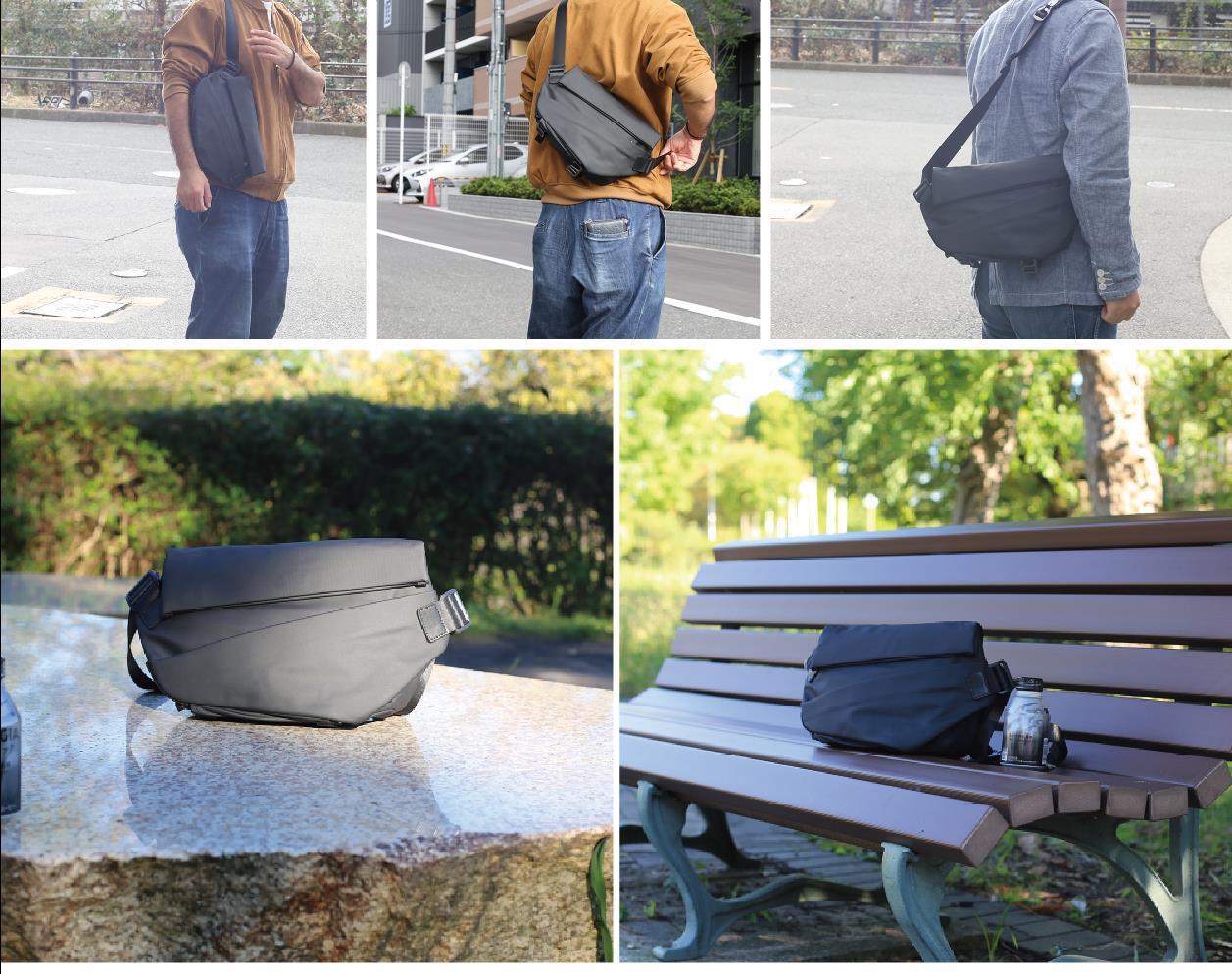 お出かけしたくなる程よいシンプルで便利なスリングバッグ、休日のお出かけ、ご旅行先でもこの一つだけで、ハンズフリー可能になりました。