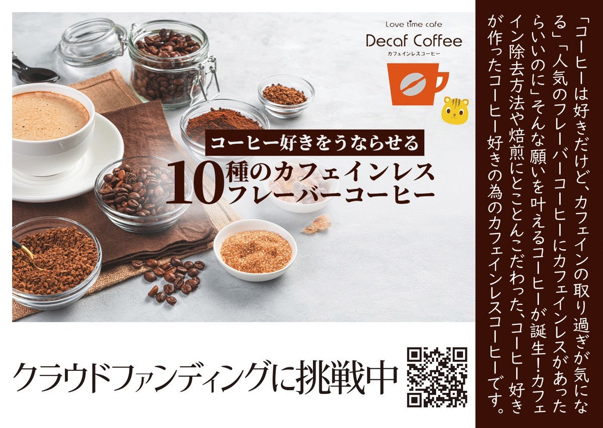 こんにちわ!ご支援・ご声援、誠にありがとうございます!/クラウドファンディング挑戦中!募集終了まで、残り1日!\「コーヒーは好きだけど、カフェインの取り過ぎが気になる」「カフェイン摂取を控えている」「香りがやさしいフレーバーコーヒーを探している」「いろいろなフレーバーコーヒーを試してみたい」「寝る前でも、美味しいコーヒーが飲みたい」「人気のフレーバーコーヒーにカフェインレスがあったらいいのに」そんな願いを叶えるが、ラブタイムカフェのフレーバーコーヒー(カフェインレスコーヒー仕様)です!カフェイン除去方法や焙煎にとことんこだわった、コーヒー好きが作ったコーヒー好きのためのカフェインレスコーヒーを、ぜひ試していただきたいです!クラウドファンディング初心者でわからないことも多いですが、、、より多くの方にカフェインレスフレーバーコーヒー を知っていただけるよう、PR活動も頑張っていきますので、応援よろしくお願いいたします。twitter(@lovetimecafe)でも活動状況を発信していますので、ぜひフォローお願いいたします。またプロジェクトのこともSNSでシェアしていただけると、励みになりますので、ぜひお願いできますと幸いです。