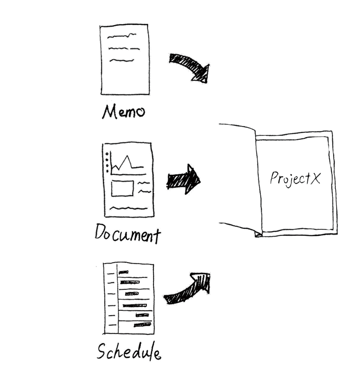 資料やメモ、スケジュールなどあらゆる書類をひとつにまとめることができます。ページの入れ替えは簡単で、内容やページ順を気にすることなく書き込むことが可能です。プロジェクトごとに書き分けておけば、情報整理もスムーズです。