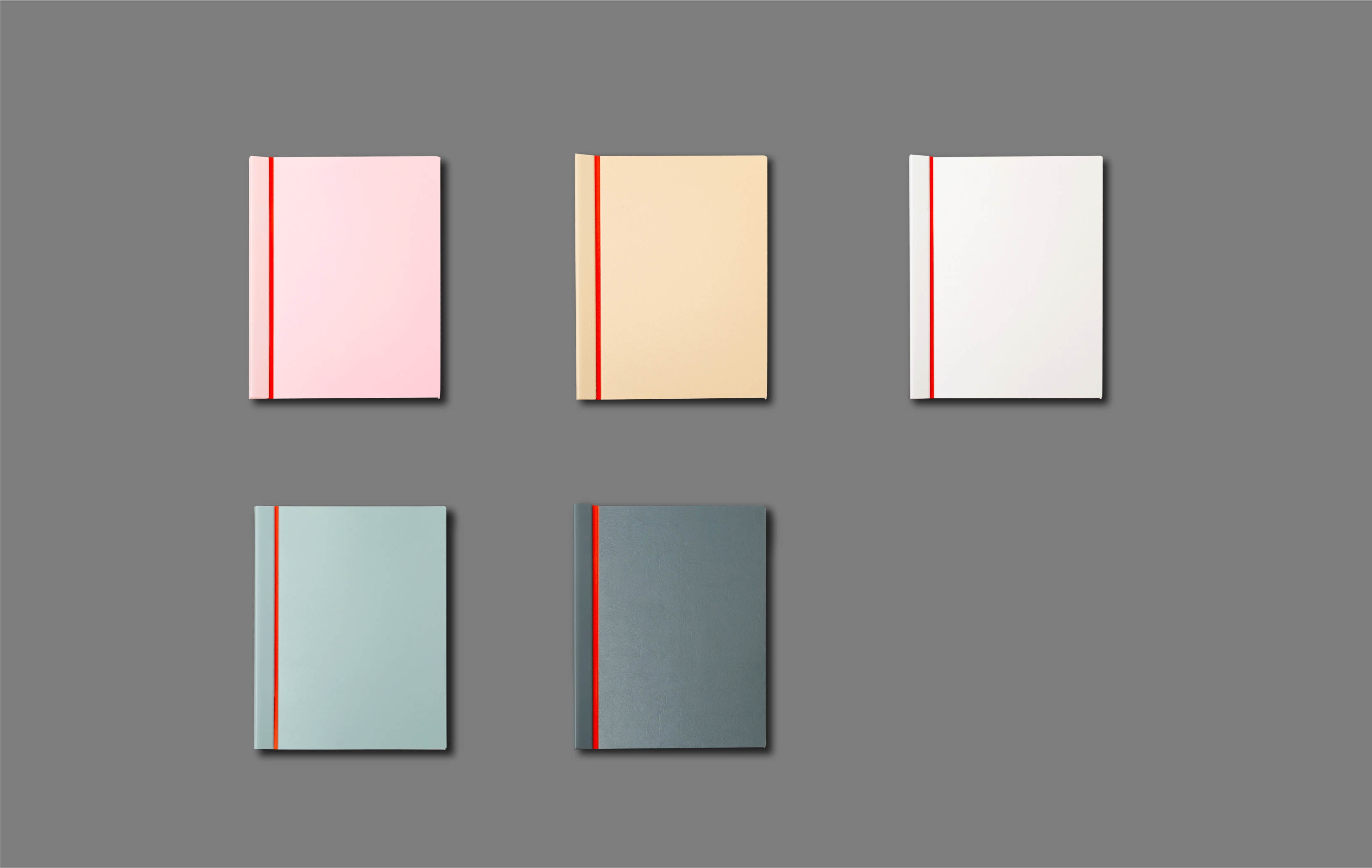 A5サイズ(左上から ピンク,ライトブラウン,ホワイト,ミントグリーン,ブルーグレー)