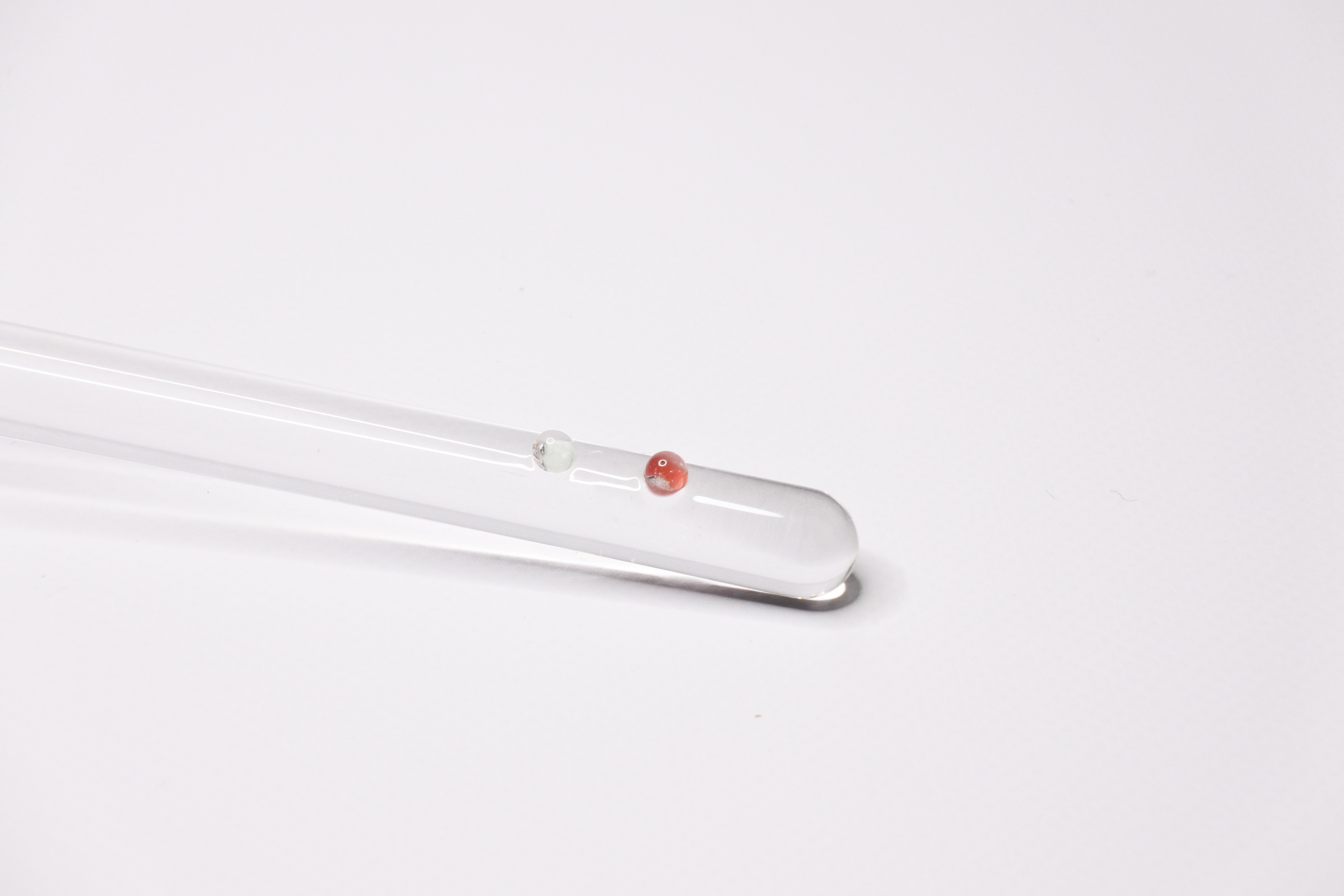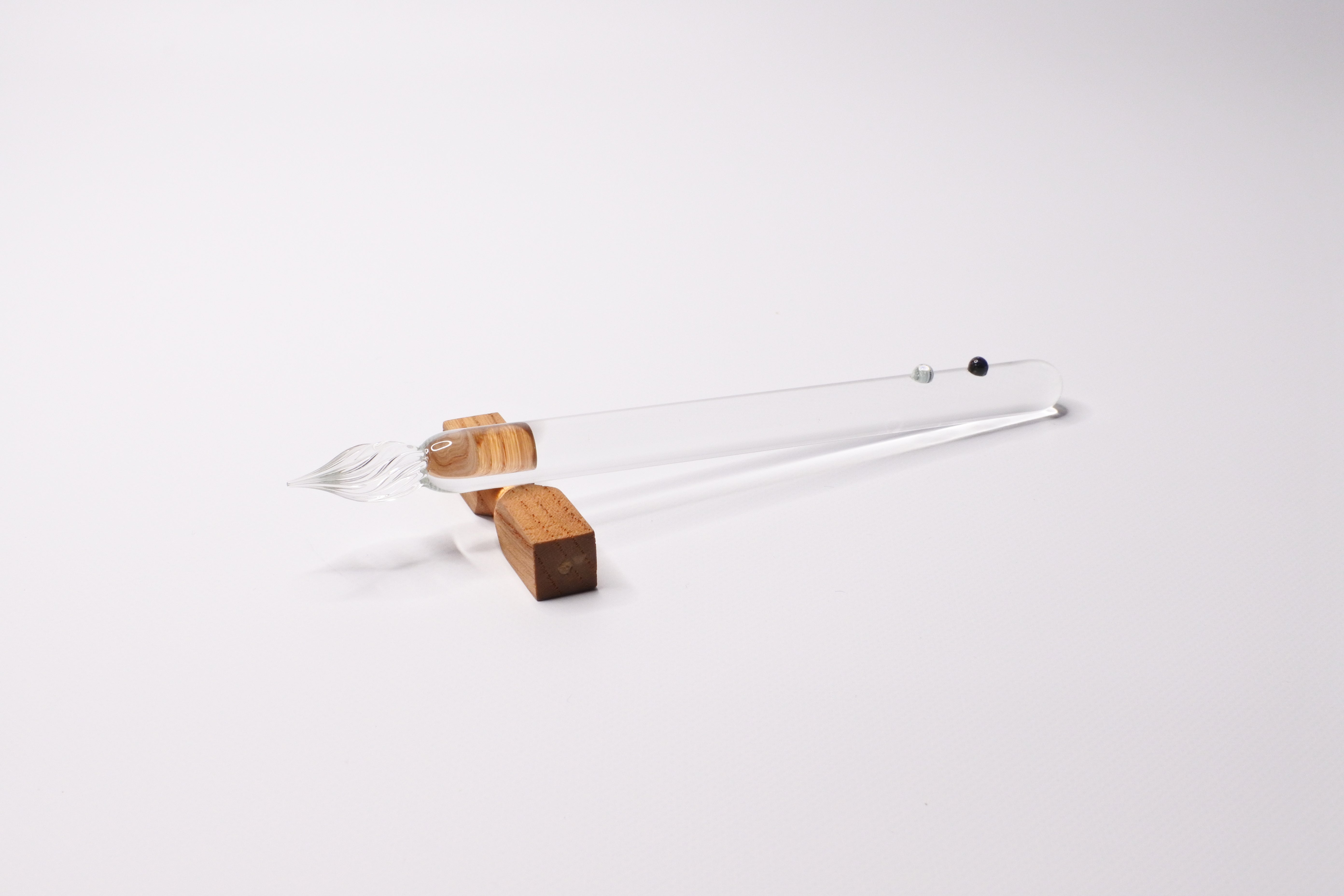 ・ガラスペン:東京の両国で、実験などで使用する試験管やビーカーなどの耐熱ガラス製品を手掛けてきた竹内製作所。ガラスがもっと身近に日常を楽しませてくれるモノにしたいという気持ちからスタートさせたブランド「clarto(クラルト)」。長年培われた技術で丁寧に作られたガラスペン「acari」をぜひお楽しみください。ペン軸の太さは直径8mm、カラーバリエーションは3種類、赤・青・黒の3色からご選択できます。ペンの持ち手のカラーポイントのみ色が変わります。