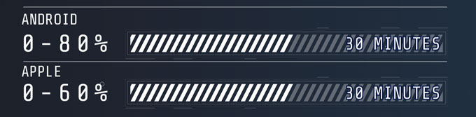 ※1.iphoneは30分で60%、Androidは30分で80%。