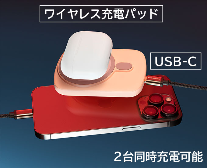 USB-C で スマートフォン ワイヤレス充電パッド で イヤホン を同時充電します。