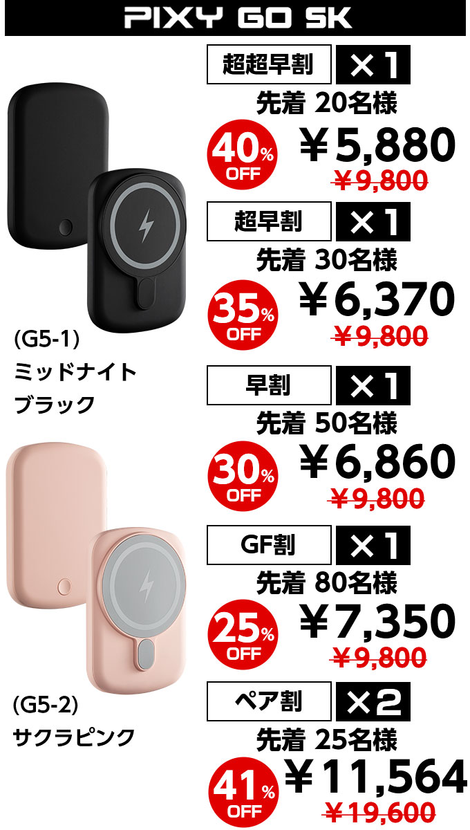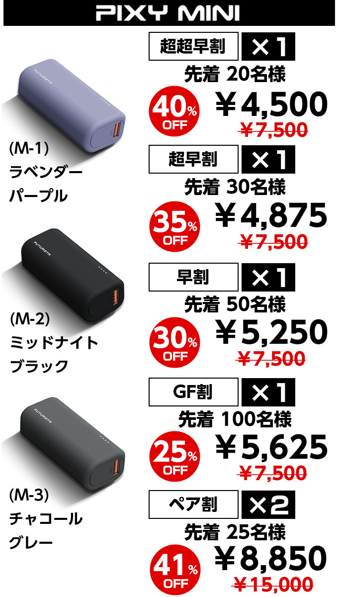 2023/02/17 19:17お世話になっております。株式会社CONQUESTです。 お待たせしました。PIXY MINI & PIXY GOは2/24(金)から順次発送させていただきます。住所不備などないよう、ご登録住所の確認をお願い致します。また、2/20以降はお届け先住所変更はお受けできませんので、ご了承ください。どうぞよろしくお願い致します。 もっと見る