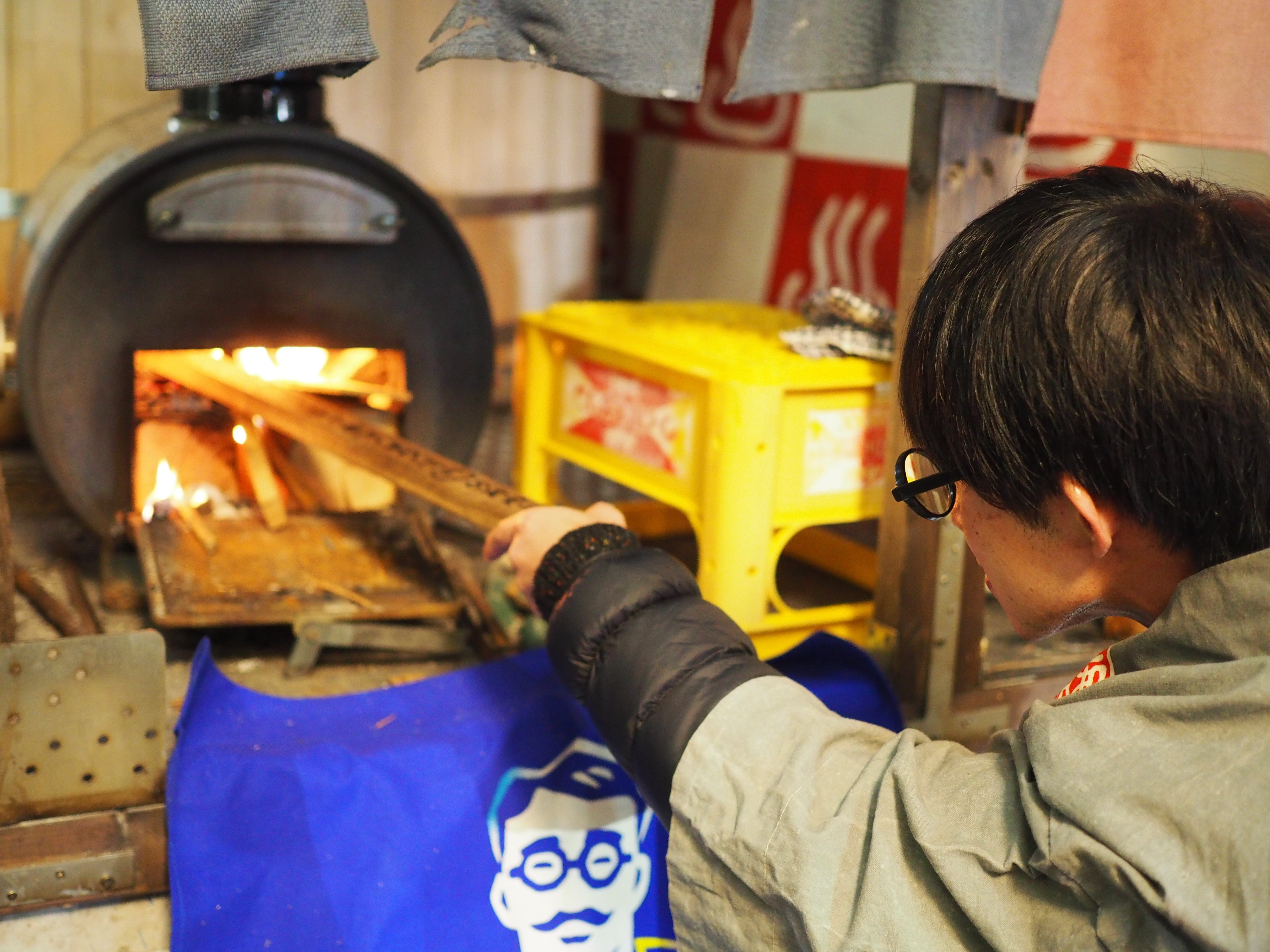▼焼きイモ屋さんLv100みたいなイメージ渋谷に偶然集った初めましての人たちと共に薪を炊き皆で一緒に一夜限りの幻のお風呂を築き上げます