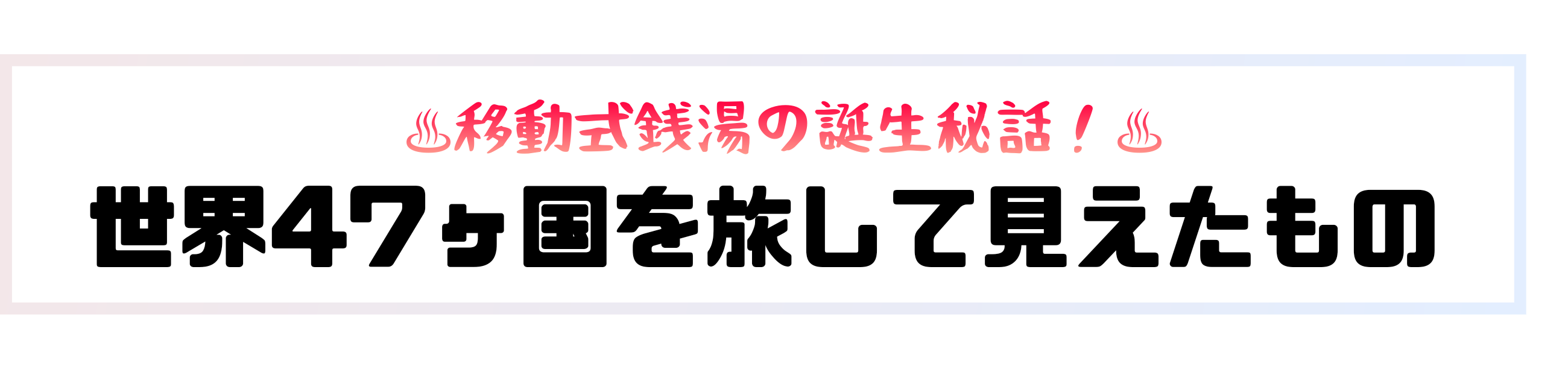 ①移動式銭湯の誕生秘話!~世界47ヶ国を旅して見えたもの~
