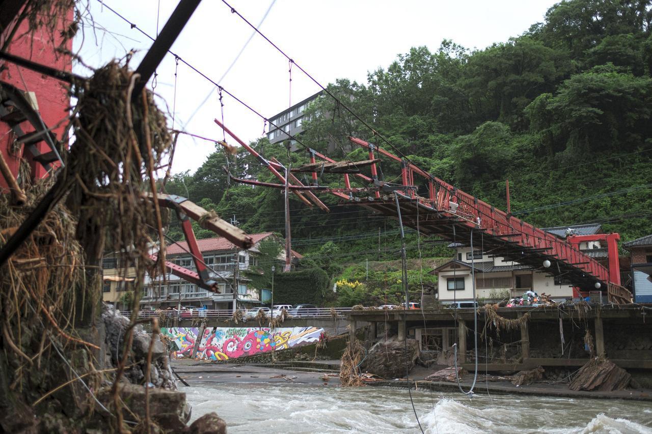 ▼洪水によって約半数もの旅館が流された天ヶ瀬温泉街 自分の移動式銭湯は自衛隊のお風呂とは違い現地での給水が必要不可欠であり、インフラが整っていない場所では基本的に活動できません