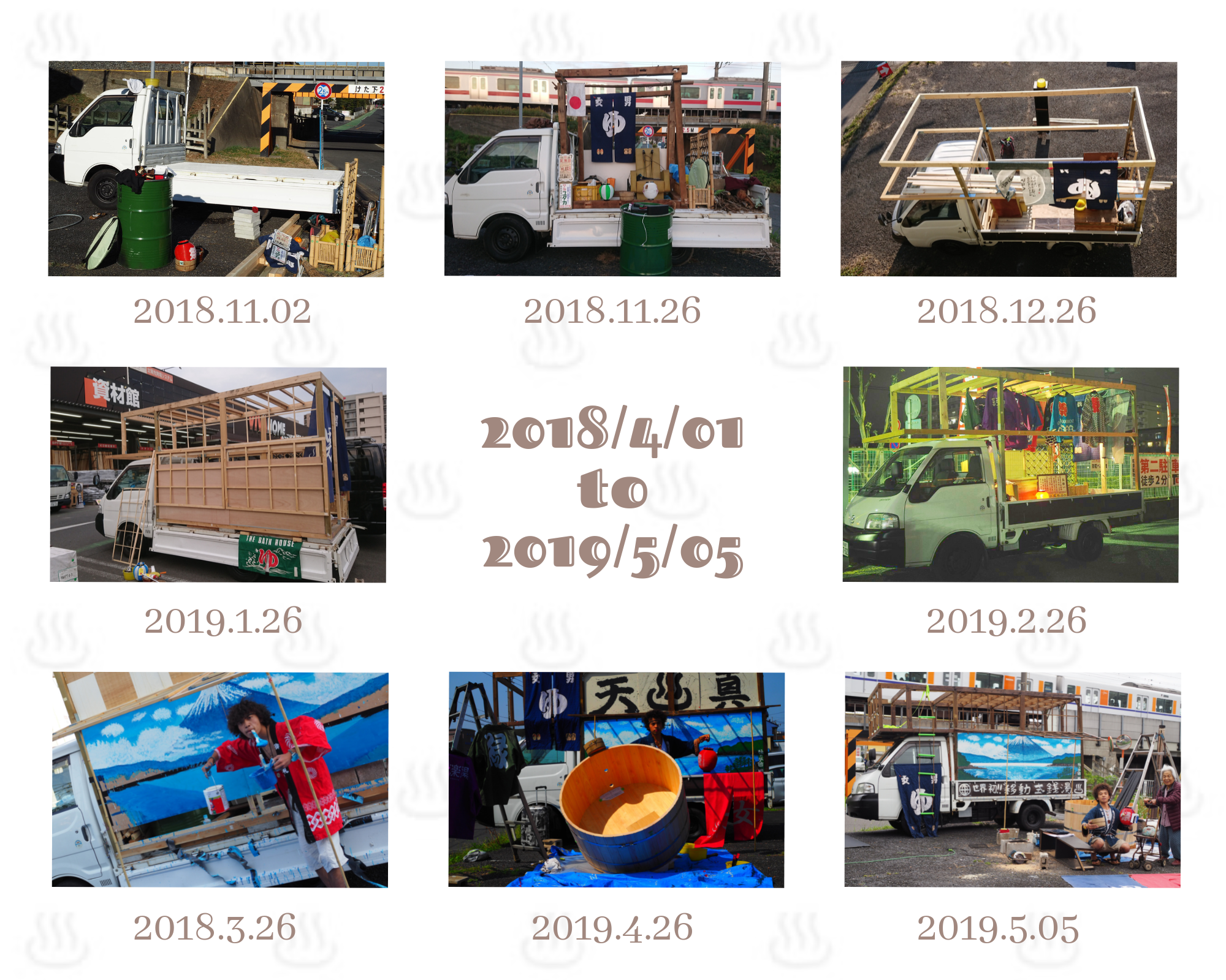 ▼法被は自分にとって湯の無い銭湯そのもの海外で四六時中この姿(はっぴ)で過ごしたことで改めて日本の「お風呂」というものに可能性を感じた自分は日本へ帰国後トラックの上にお風呂を載せた“移動式銭湯”なるものを創ることを決意