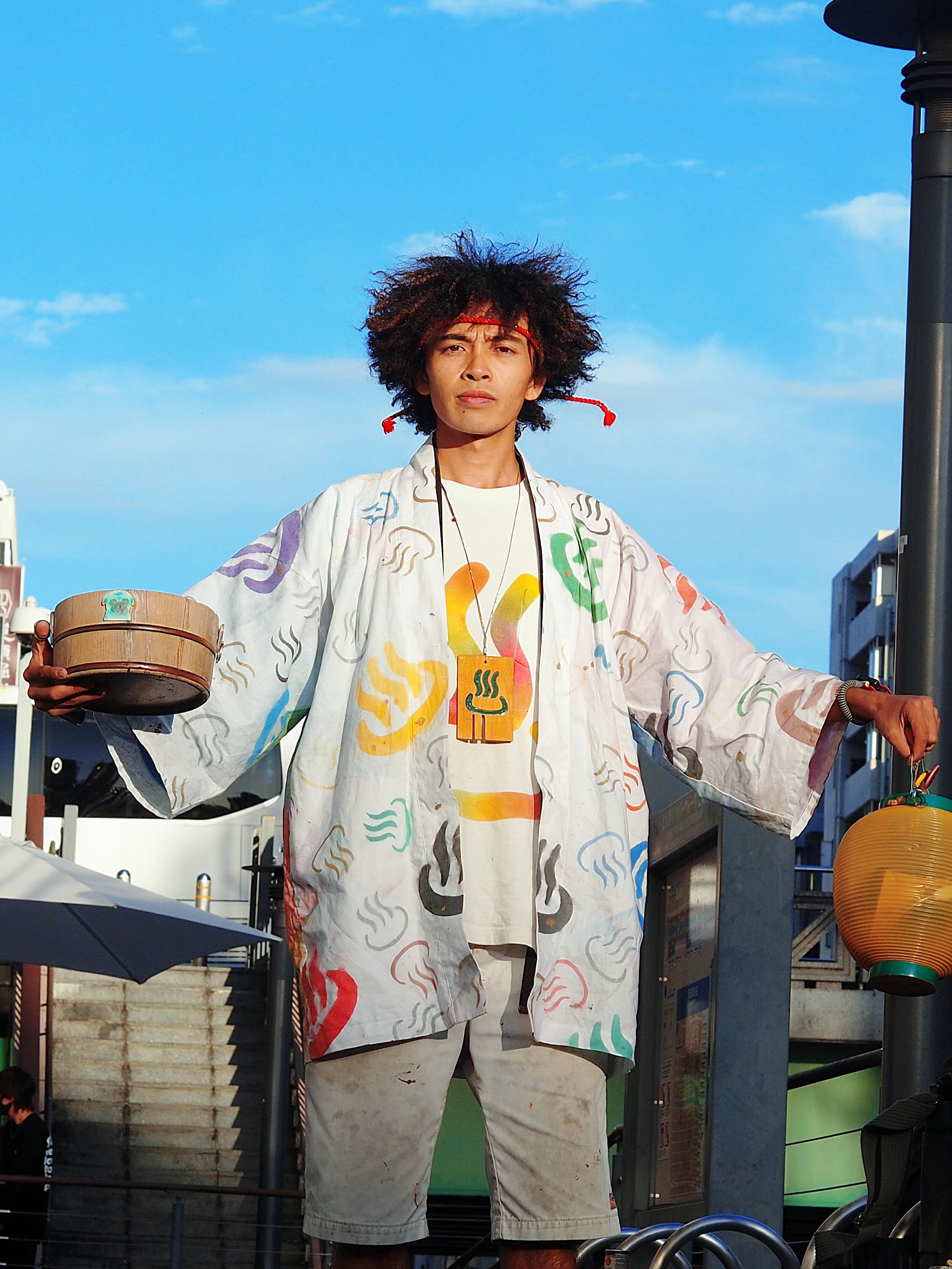 ▼皆で「はっぴ」を着ることでもはや“主催者”が誰なのかすらもわからなくなるという面白さが生じる「男」も「女」も「肌の色」も「文化」も関係ない。そこにはただ“お風呂”がある
