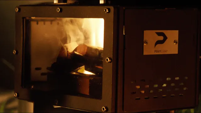 POSTCAMPミニ薪ストーブの最大の魅力は両サイドいっぱいに設置された窓です。炎であなたの心も体も温めてくれます。