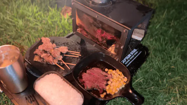 ストーブの上ではキャンプの醍醐味であるキャンプ飯も作ることができます。