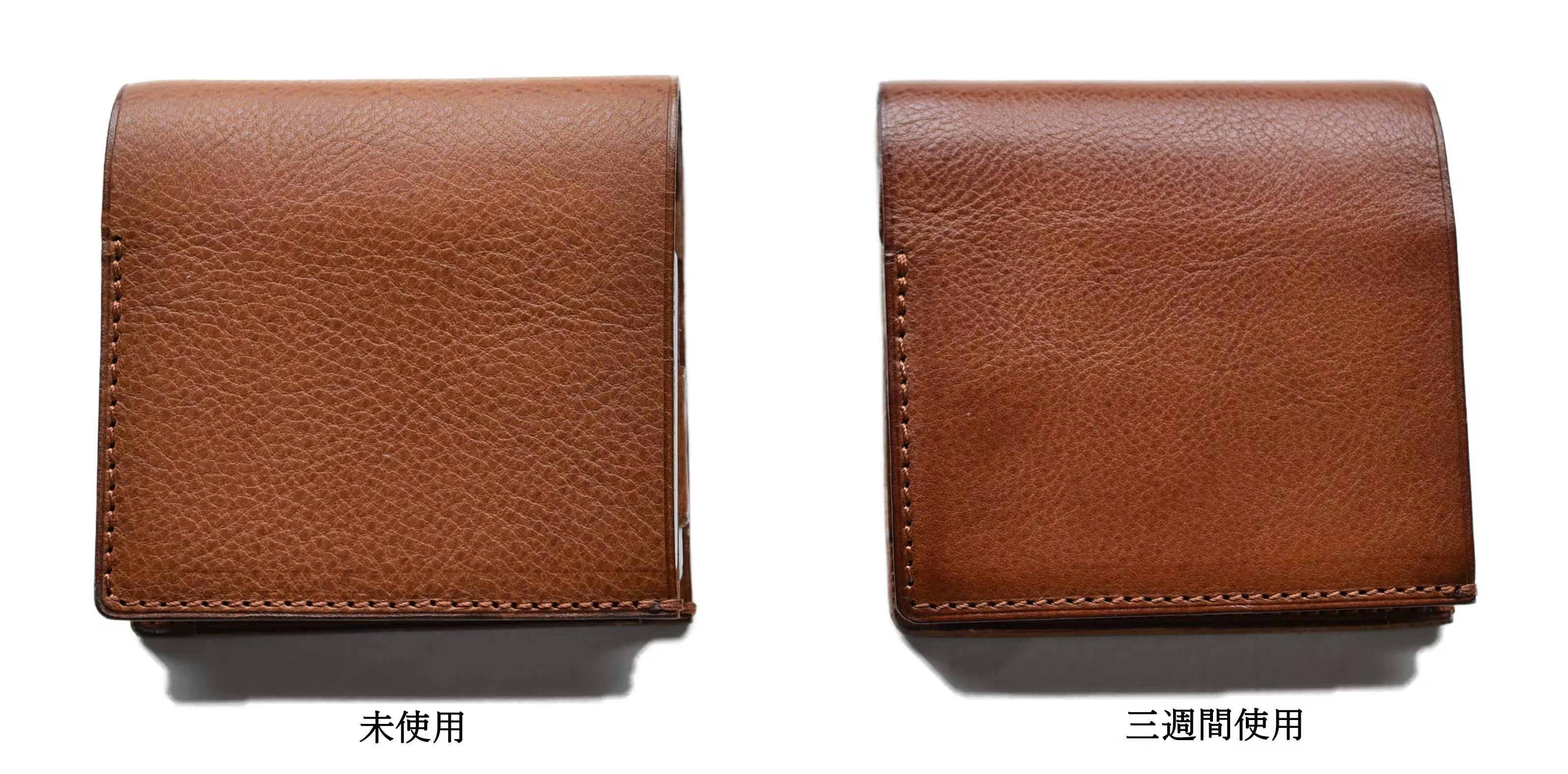 その為、殆どメンテナンスが必要ありません。ごく僅かなタンナーによって継承されている伝統的な技術です。他の革に比べ生前の傷、トラ(首の後ろの皺)などが隠れることなく出ています。ですが使いこむことによりエイジング(経年変化)が進み、色・風合いが変わって来る事が最大の特徴になっています。