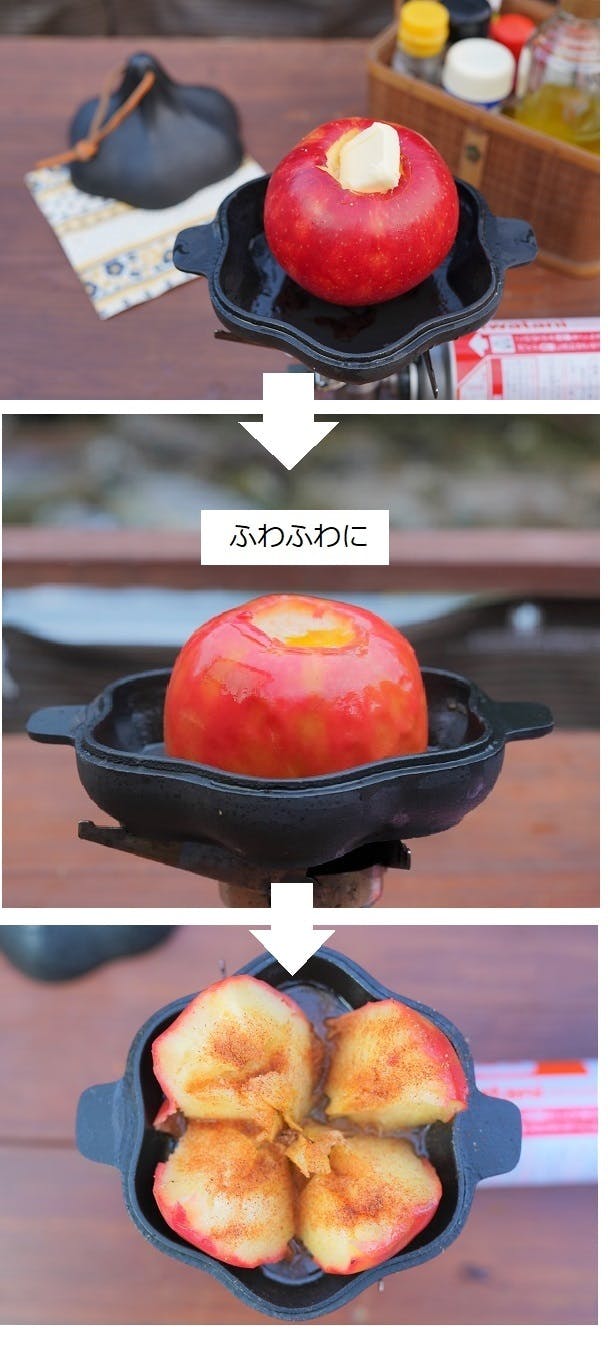 芯をくり抜き、バター、砂糖を入れて、焼き上がり後にシナモンシュガーや蜂蜜を掛ければ出来上がり!! 家族の笑顔間違い無しです!!