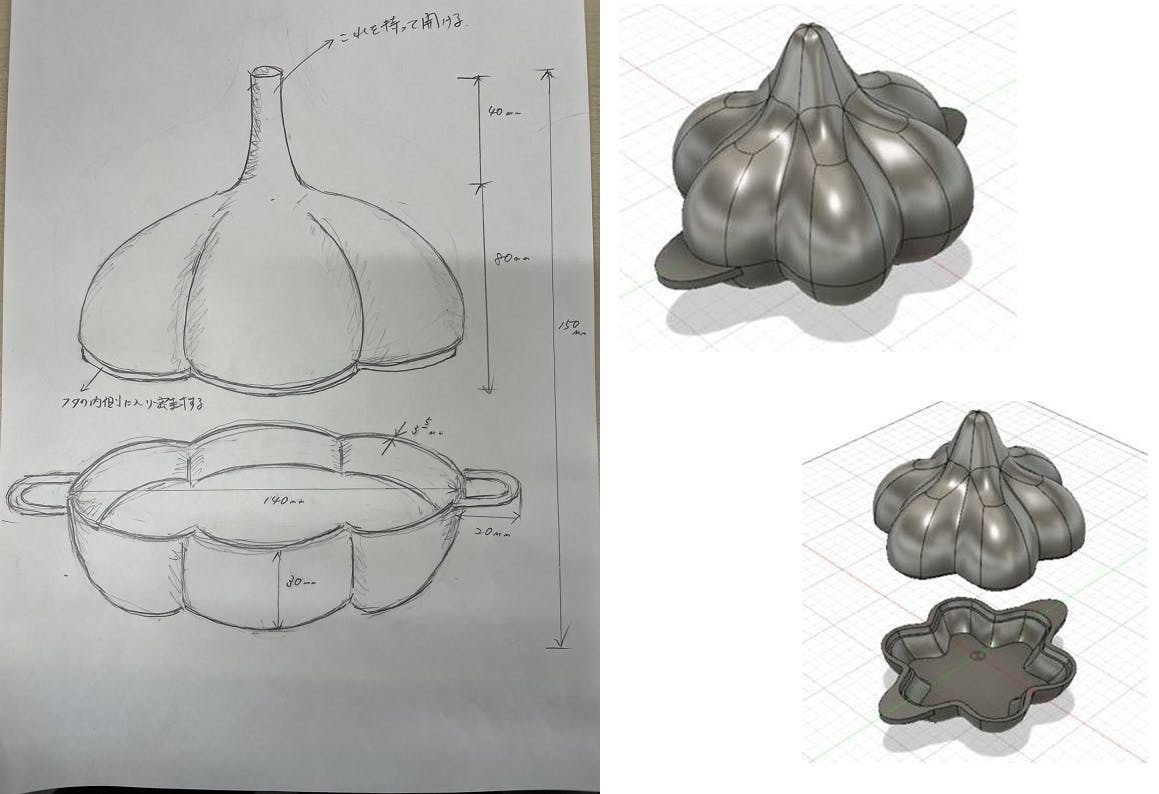 創業、昭和21年、75年目を迎える大阪の会社です。会社の主業は、フエルトの加工、販売を行う会社ですが、スマートフォンに使われるスピーカーの振動板分野では、世界的なシェアを持ち、また、炭素繊維(CFRP)と発泡体を組み合わせた構造体の分野では、国内外の技術コンペの受賞と次々と新たな市場へと挑戦を続けている企業です。私が所属する新規事業開発課では、世に無いアウトドア商品の開発に取り組んでおり、この「にんにくん」を開発しました。屋外ではニンニクは、アルミホイルに巻いて火の中に入れるしか、丸焼きが出来ないが、焼き加減も分からず、シングルバナーでは焼けず、もっと簡単に調理出来ないかと考え、蓋の高さを考え、絵描き、3Dデータを作成し、鋳鉄での試作を行いました。