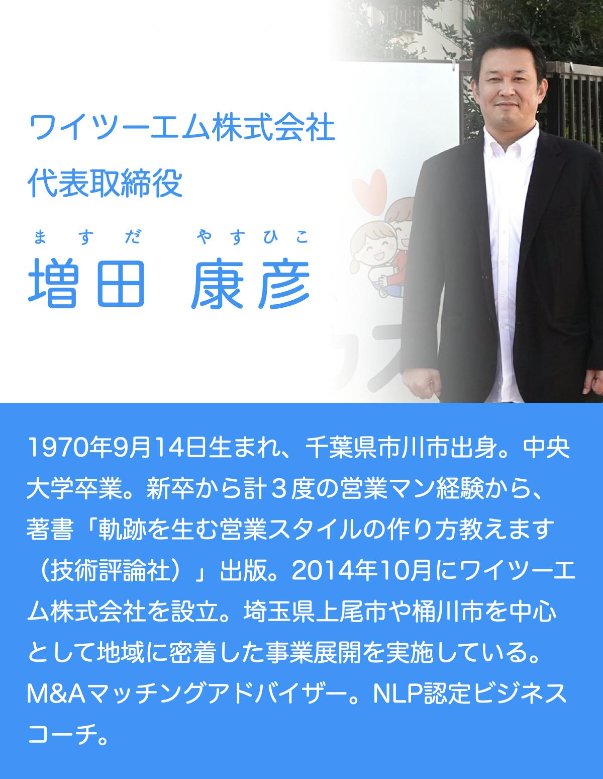 はじめまして!ワイツーエム株式会社 代表取締役の増田と申します。数あるプロジェクトの中からご覧いただきありがとうございます!