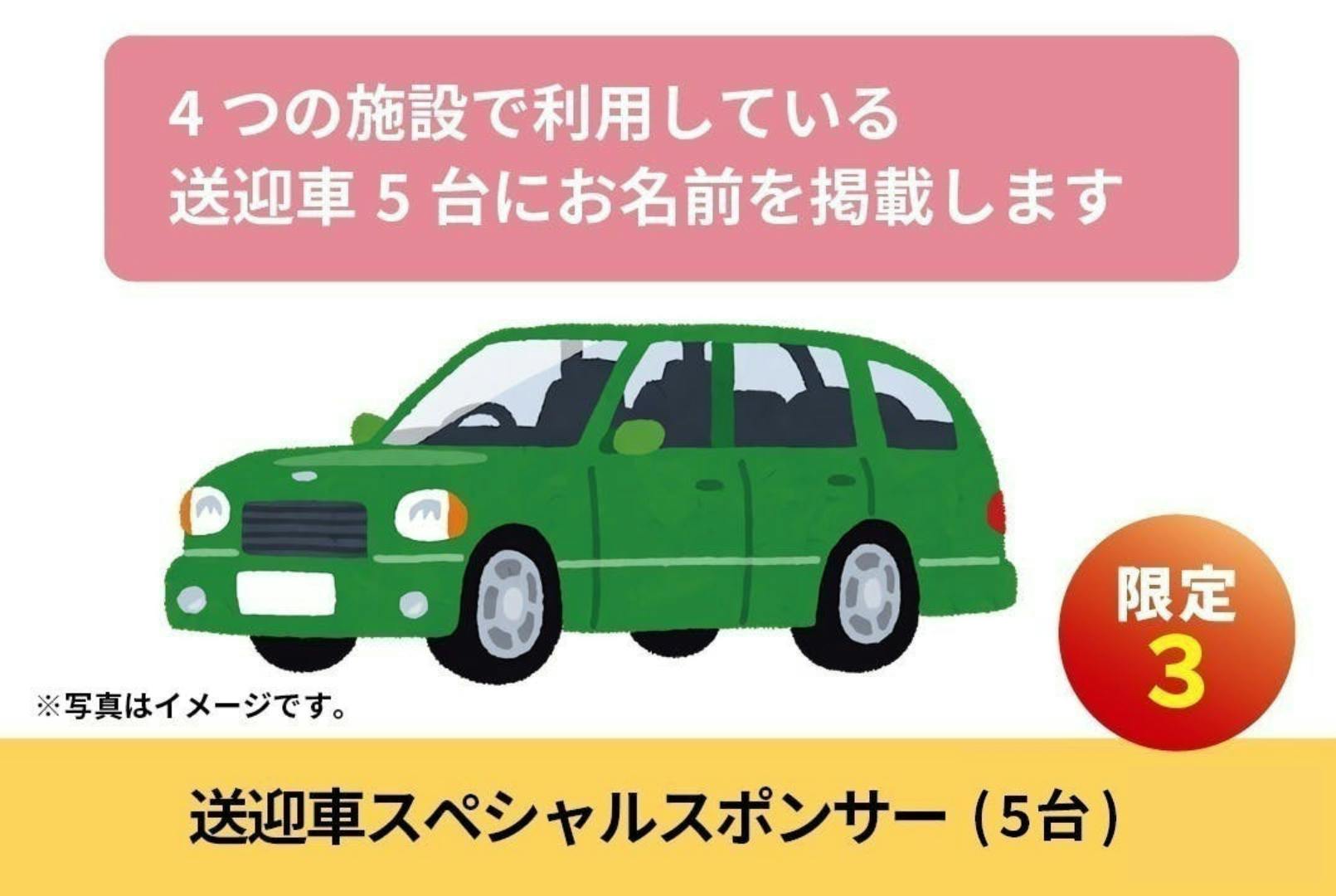 送迎車スポンサーとして4つの施設で利用している送迎車5台にステッカーでお名前を掲載させていただきます。