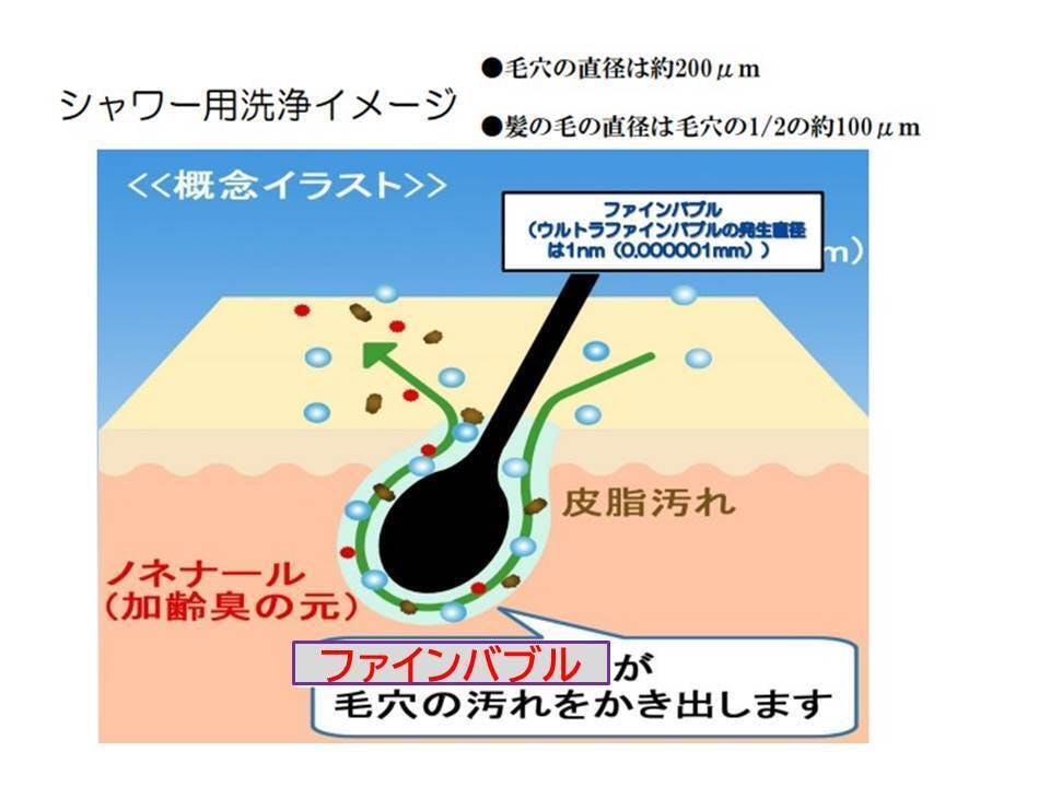 普段どおりにシャワーを浴びているだけで、1ccあたり約2000万個以上のウルトラファインバブルが洗い流してくれます。