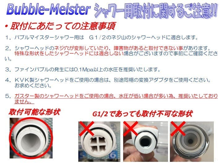 ◆吐出量ストレート水量:7.5L/min(元圧0.15MPa)気泡量:マイクロバブル(約30µm)約6000個/cc ミスト水量:3.5L/min(元圧0.15MPa) 気泡量:ウルトラファインバブル(約130nm)約2000万個/cc(平均粒径)使用給水圧0.1〜0.3MPa