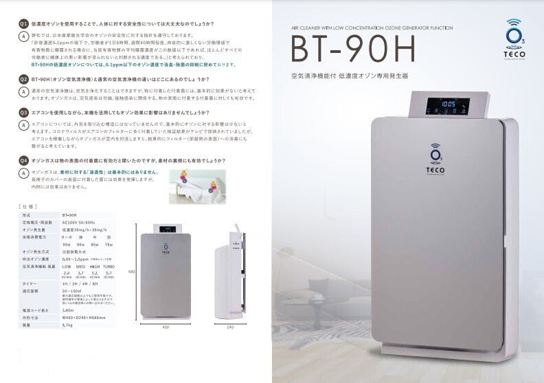 ■BT-90H■空気清浄機能付低濃度オゾン発生器■次世代空気清浄機■オゾン&HEPA&活性炭の強力消臭・除菌■