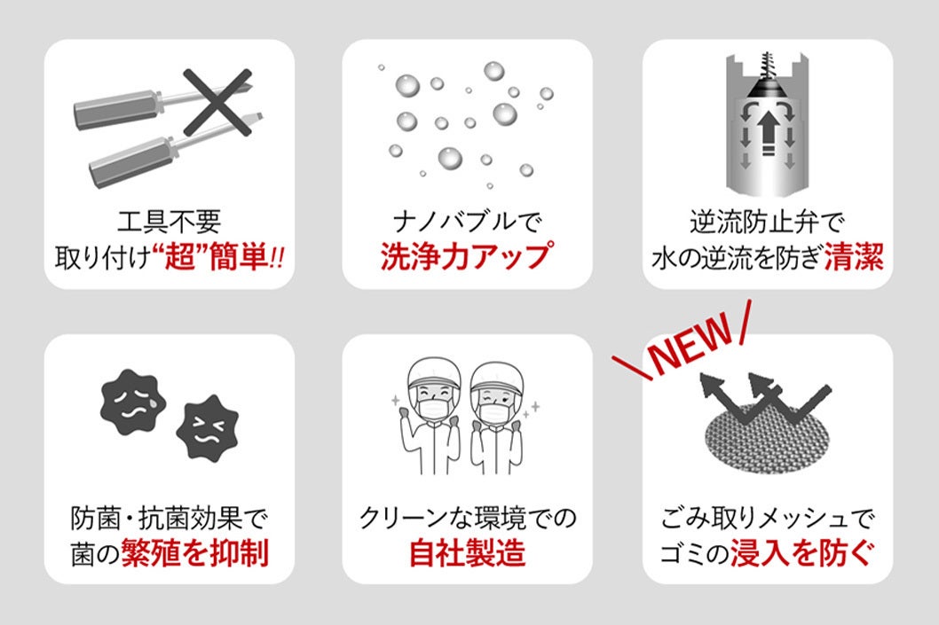 当プロジェクトの「あっとホワイト洗濯機用」には、ホースから給水口へのゴミの浸入を防ぐ“ゴミ取りメッシュ”が新たに新機能として追加されました!!
