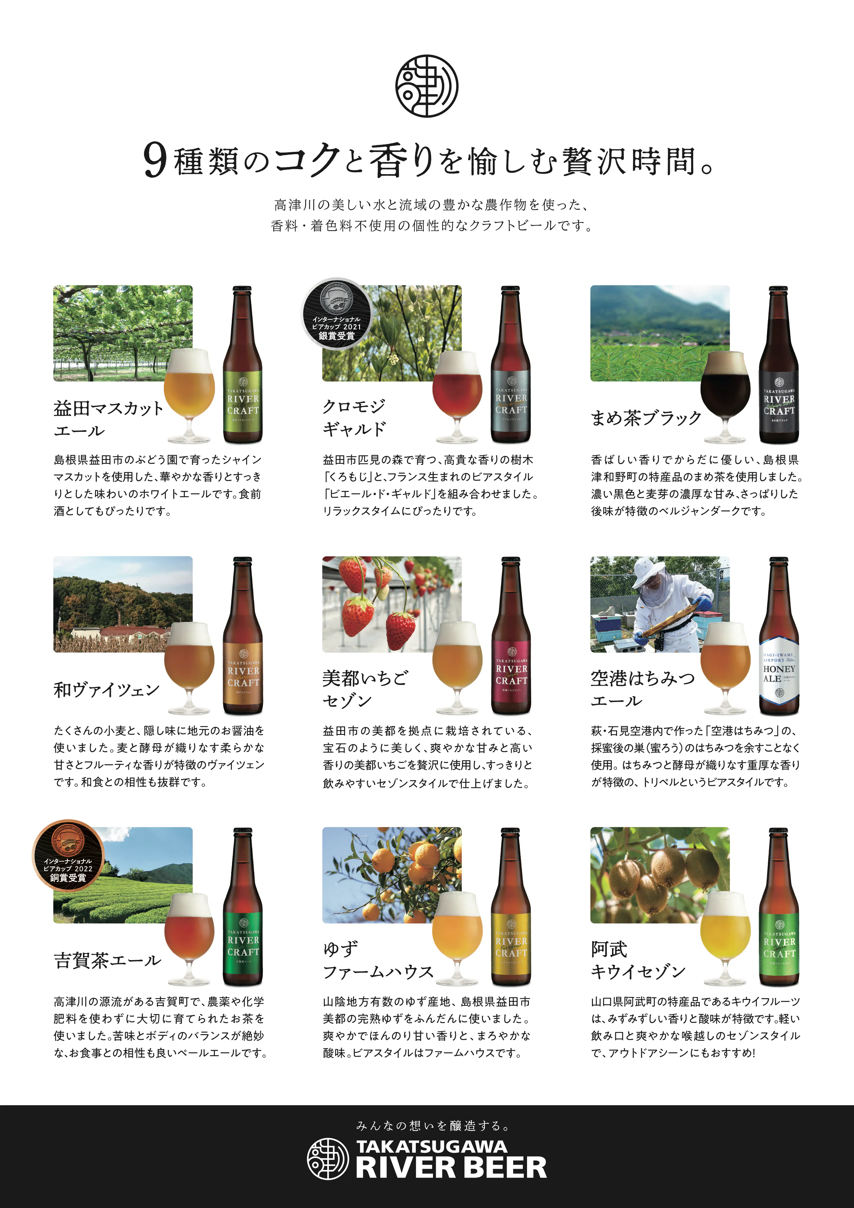 私達のクラフトビールは高津川流域や近隣市町の農作物や特産品を副材料として使用しています。