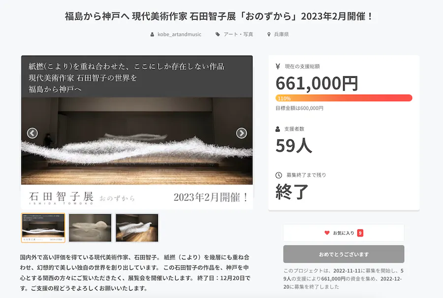 このプロジェクトは、2022/11/11に募集を開始し、 59人の支援により 661,000円の資金を集め、 2022/12/20に募集を終了しました