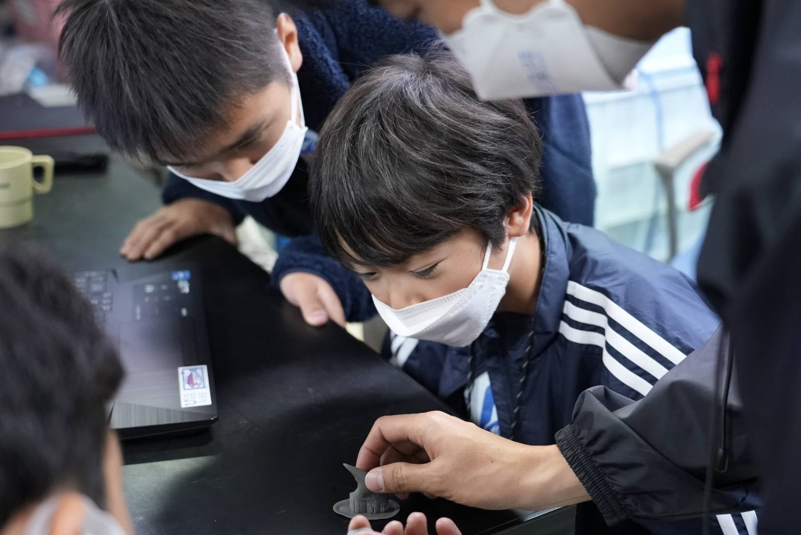 前のめり感、伝わりますか?本当に熱心に学ぼうとしている研究生たち。課題で持ち寄った、3Dプリンターで出力した3Dモデルを手に、海洋研究への想いも語ってくれました。